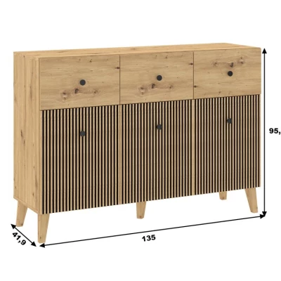 Stylová a funkční široká kombinovaná komoda HEWITT vám pomůže vytvořit harmonický a uspořádaný prostor. Komoda je vybavena 3 šuplíky a skříňkami s dostatkem místa pro všechno vaše oblečení a další předměty.