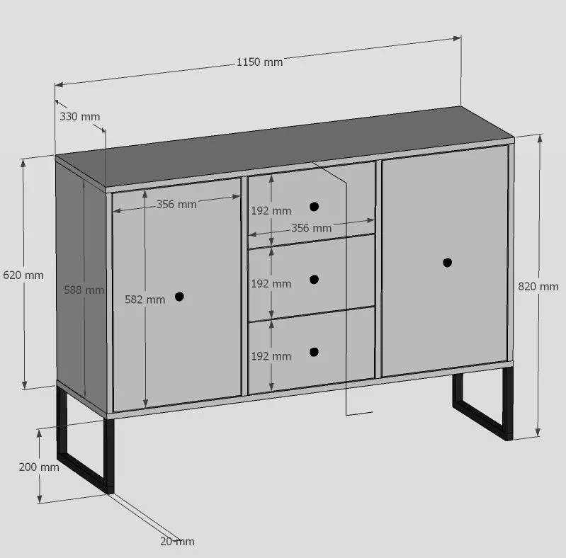 Udržte svůj domov v perfektním pořádku s kombinovanou komodou SANGER, která nabízí dostatek prostoru pro vaše oblečení, a zároveň dodá vašemu interiéru moderní nádech. Jedinečný design komody je založen na vysokých kovových nožkách a decentních úchytech ve tvaru knoflíků.