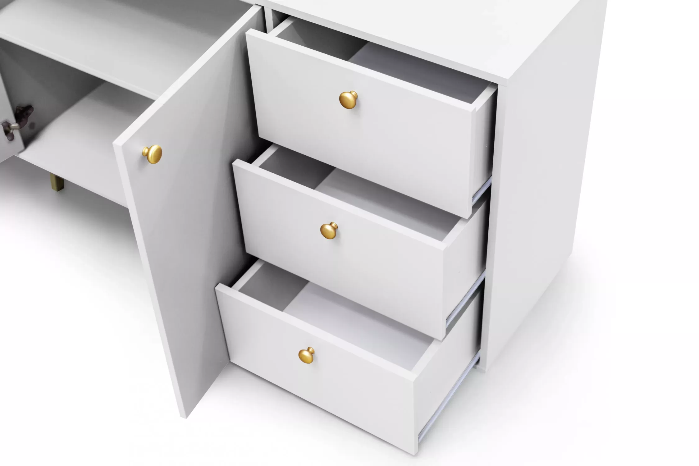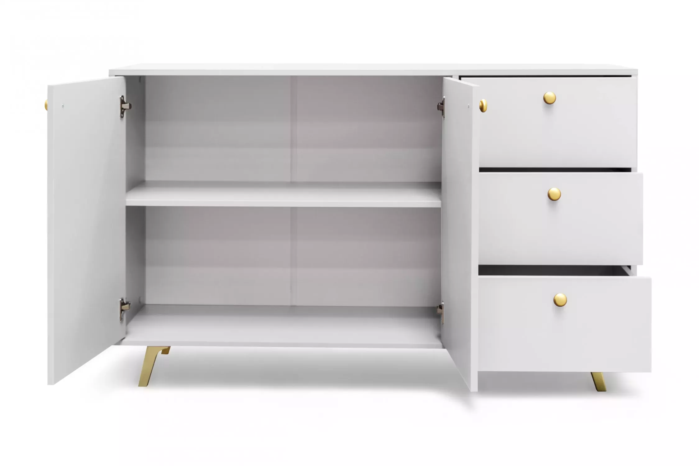 Kombinovaná komoda JOELE se hodí do každého moderního studentského či dětského pokoje. Poskytuje dostatek úložného prostoru pro uložení sezónního oblečení nebo hraček. Úchyty ve zlaté barvě zdůrazní výjimečnost této komody.