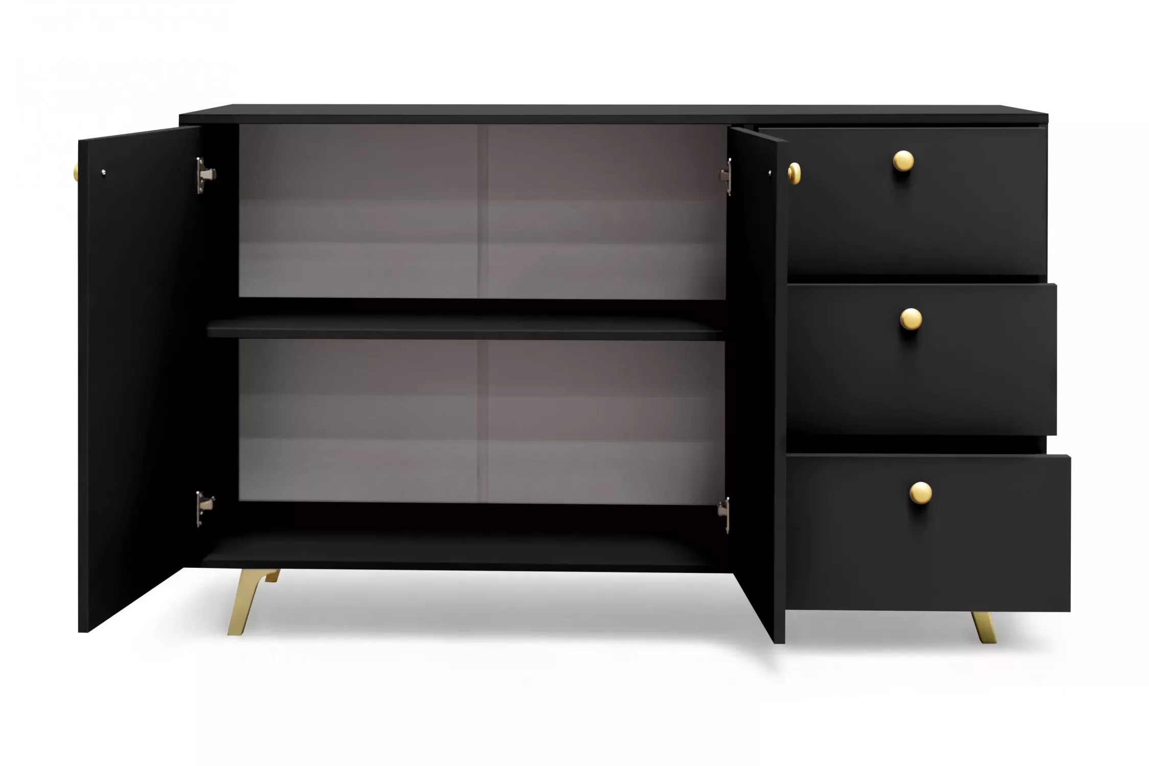 Kombinovaná komoda JOELE se hodí do každého moderního studentského či dětského pokoje. Poskytuje dostatek úložného prostoru pro uložení sezónního oblečení nebo hraček. Úchyty ve zlaté barvě zdůrazní výjimečnost této komody.