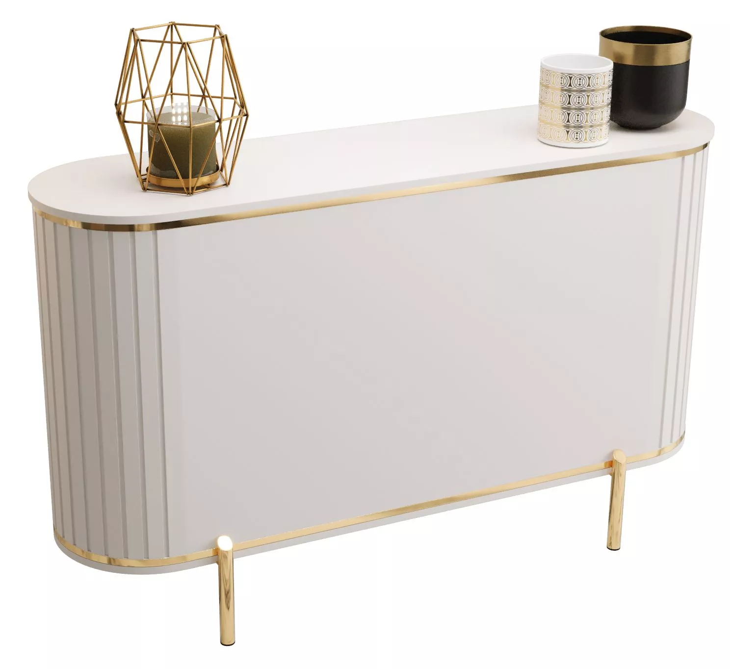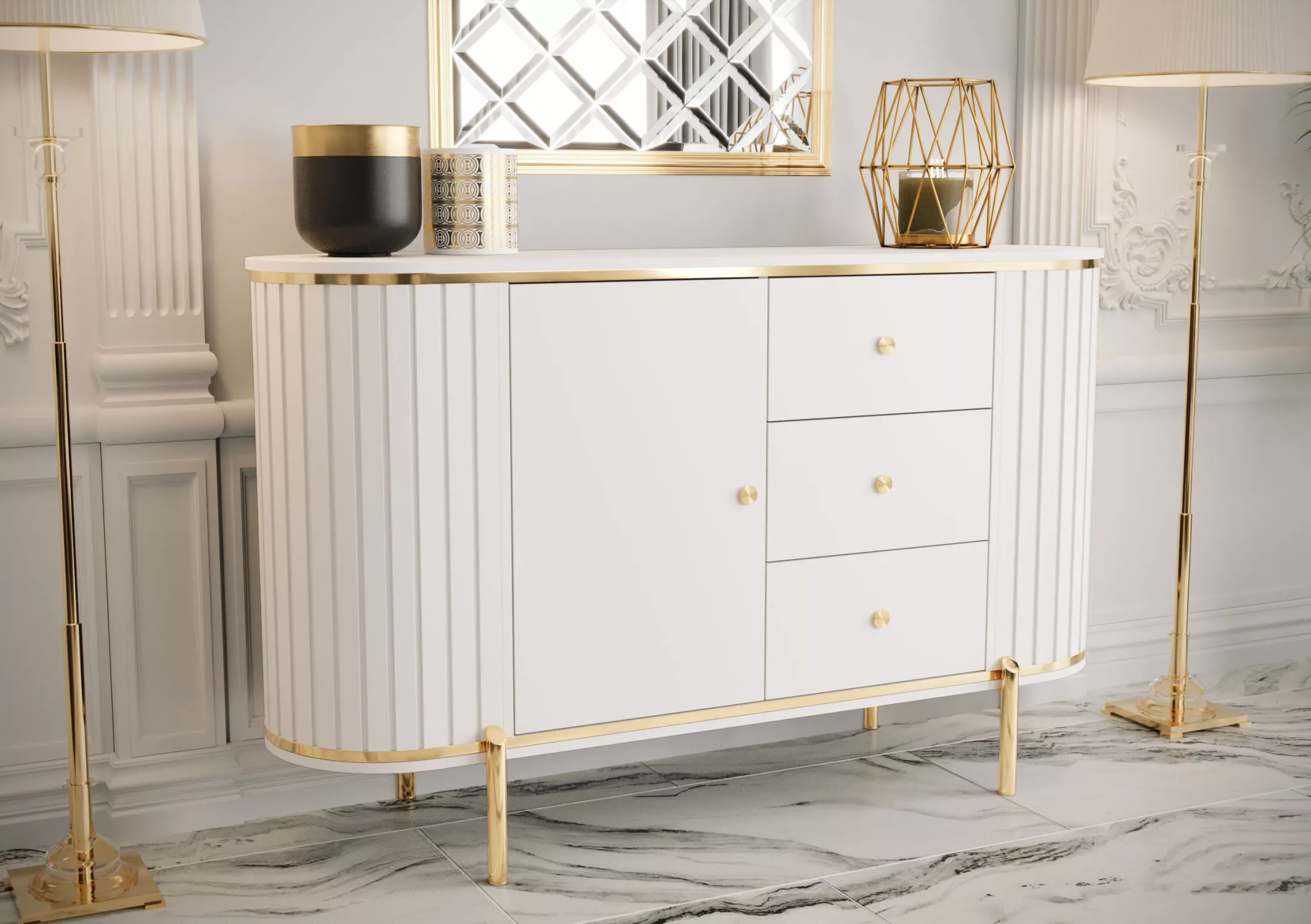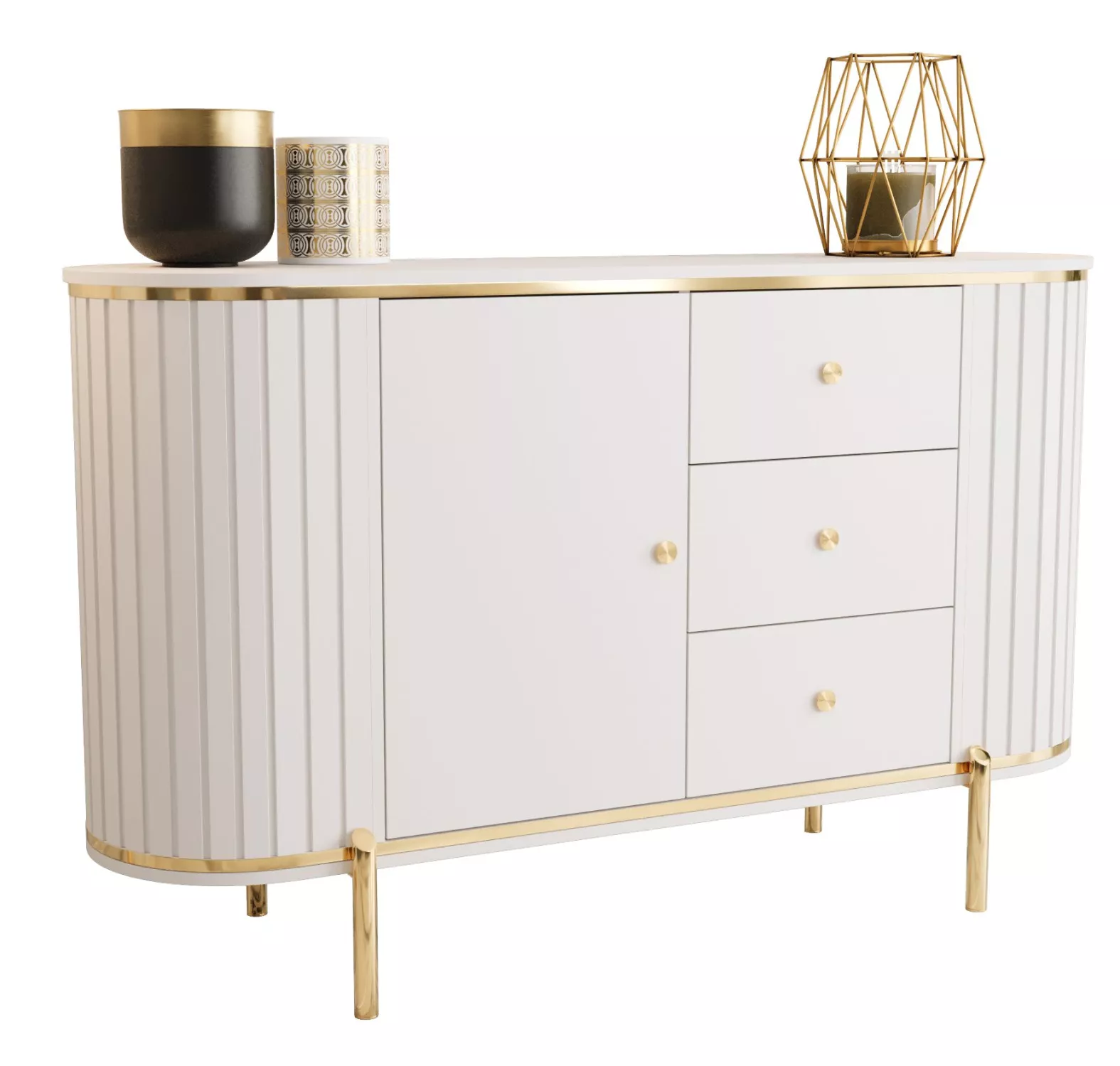 Kombinovaná komoda TEYO skvěle zapadne do každého moderního interiéru. Pyšní se zaobleným tvarem a lze ji umístit i do středu interiéru. Disponuje 3 šuplíky a polici.