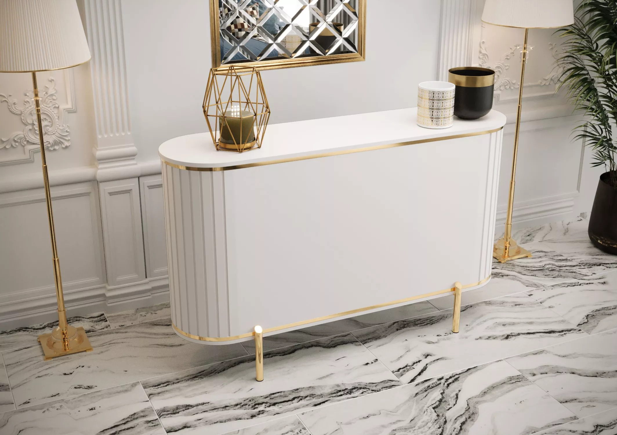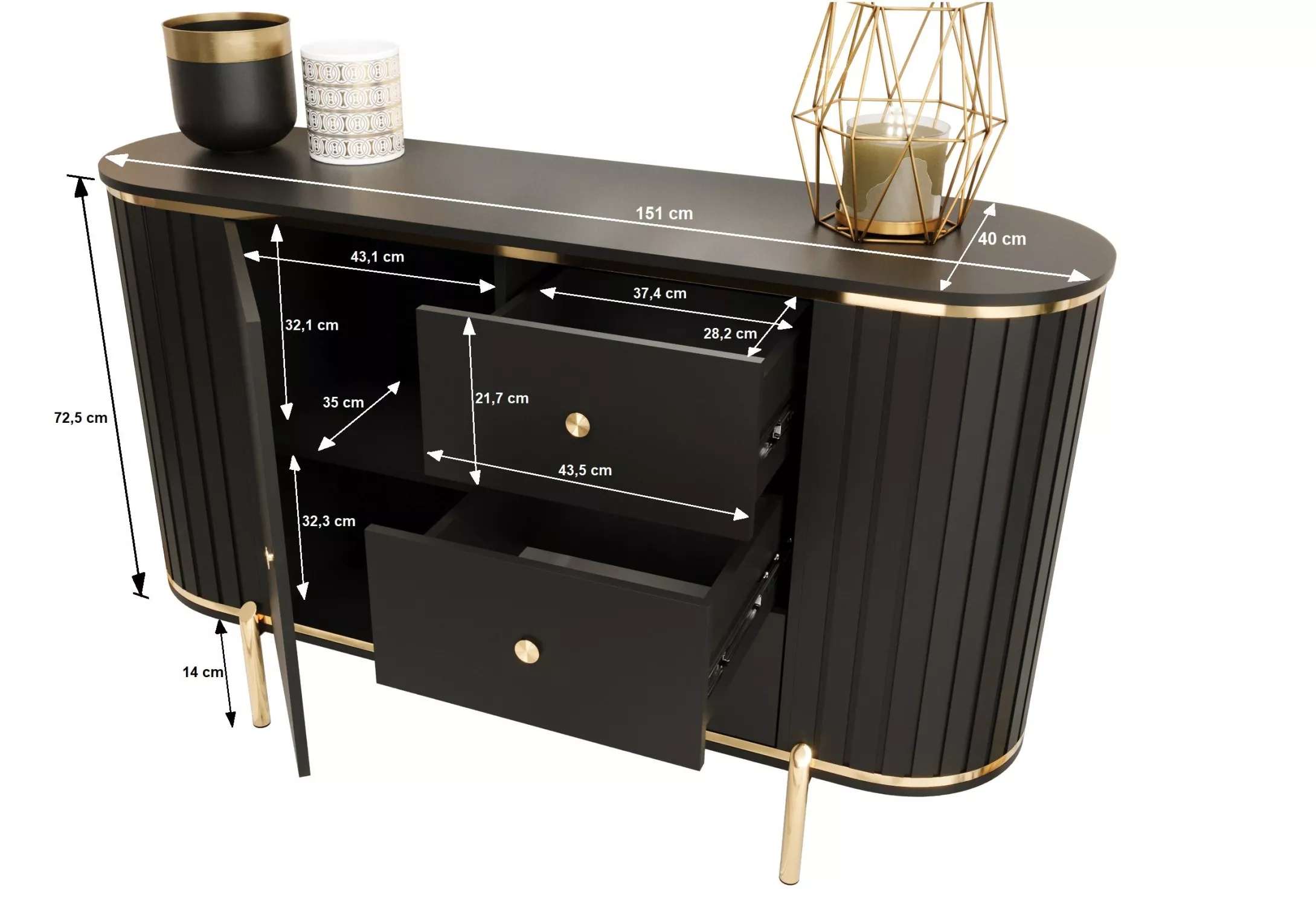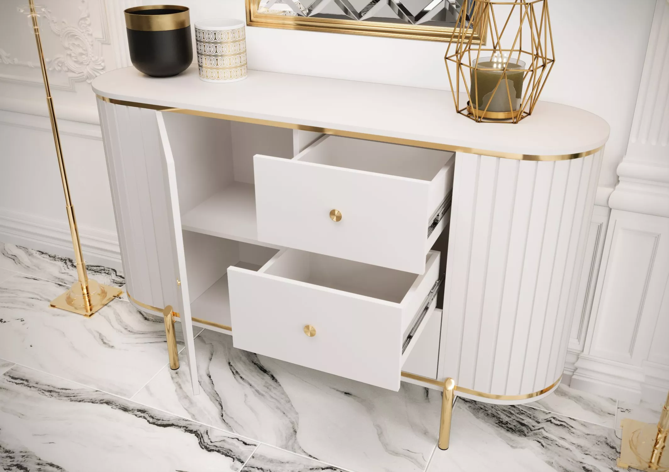 Kombinovaná komoda TEYO skvěle zapadne do každého moderního interiéru. Pyšní se zaobleným tvarem a lze ji umístit i do středu interiéru. Disponuje 3 šuplíky a polici.