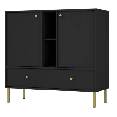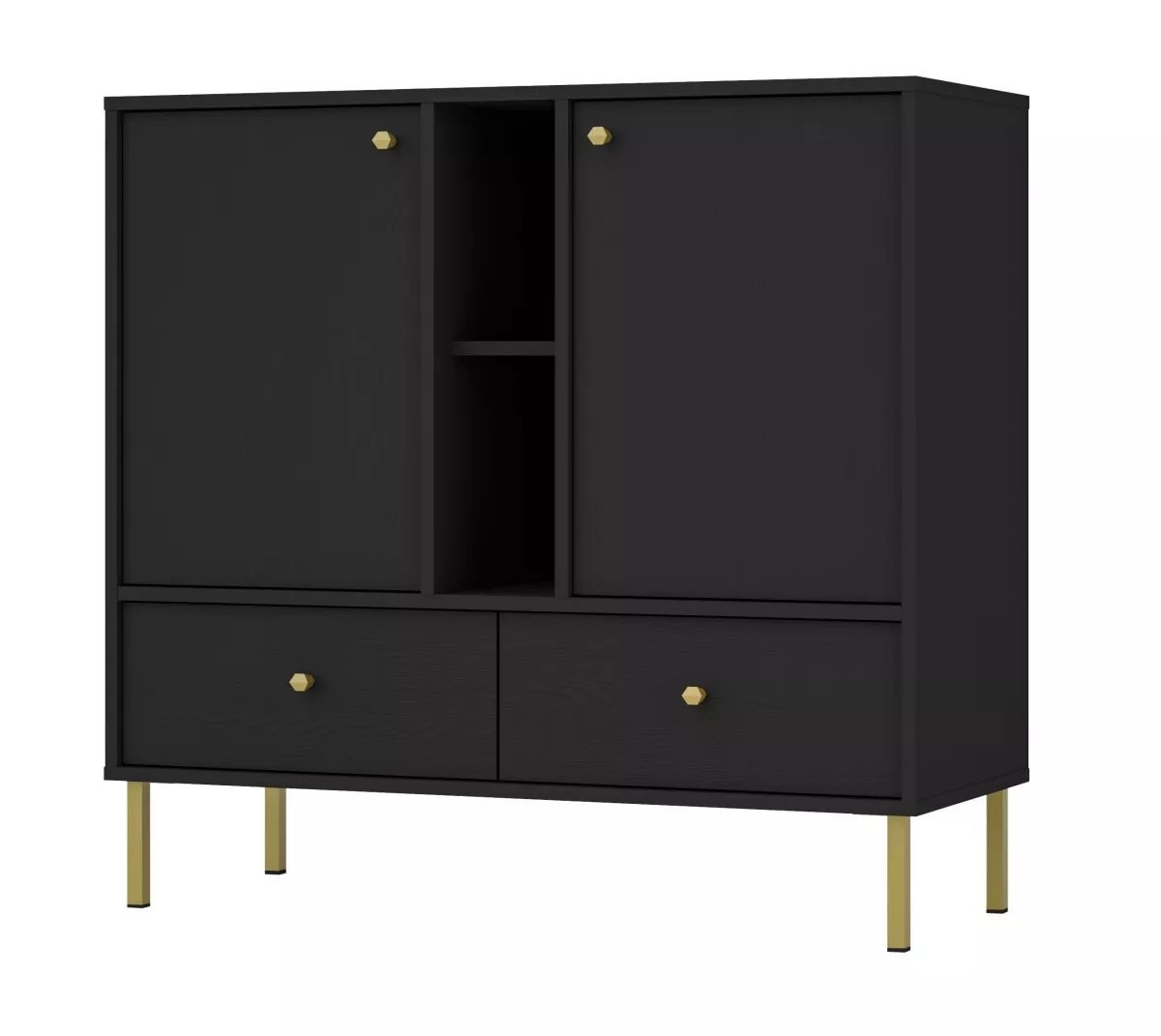 Kombinovaná komoda IROS 2 se šuplíky - grafitově černá / zlatá