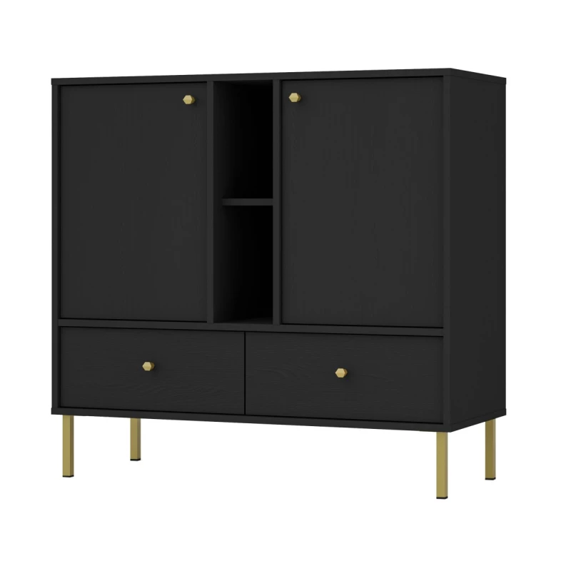 Kombinovaná komoda IROS 2 se šuplíky je stylovým a praktickým nábytkem s elegantním designem. Komoda poskytuje dostatek úložného prostoru v podobě 2 uzavřených skříněk s policí, 2 šuplíků a 1 malé poličky. Díky svému vzhledu se snadno začlení do různých interiérů, přinášejíc přitom dotek elegance a funkčnosti.