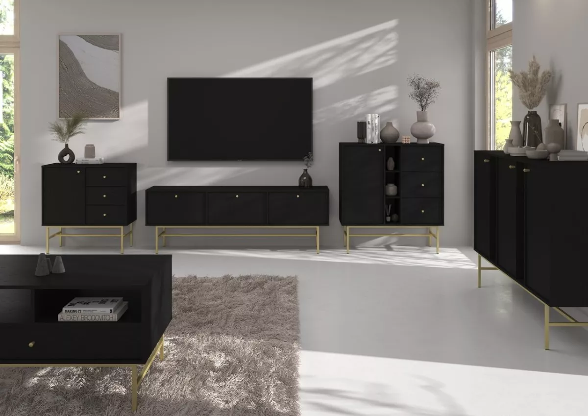 Komoda se šuplíky IROS 3 - grafitově černá / zlatá