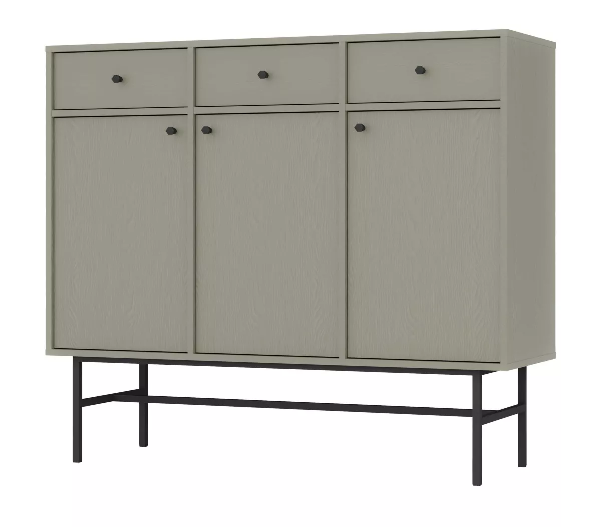 Kombinovaná komoda IROS 3 se šuplíky a dvířky je stylovým a praktickým nábytkem s elegantním designem. Komoda poskytuje dostatek úložného prostoru v podobě 3 uzavřených skříněk s policí a 3 šuplíků. Díky svému vzhledu se snadno začlení do různých interiérů, přinášejíc přitom dotek elegance a funkčnosti.