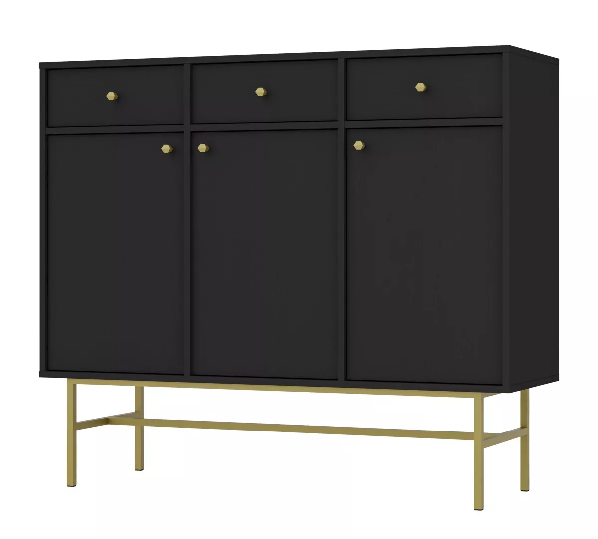 Kombinovaná komoda IROS 3 se šuplíky a dvířky - grafitově černá / zlatá
