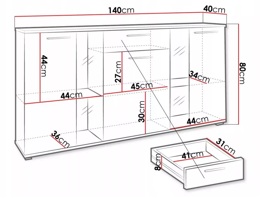 Kombinovaná komoda PARK doplní uspořádání interiéru zařízeného v moderním stylu. Poskytuje velké množství úložného prostoru pro ukládání předmětů a vystavování dekorací.