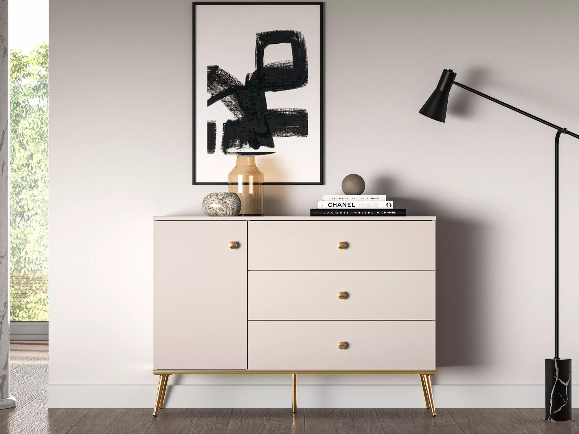 Kombinovaná komoda LUNA - kašmír / zlatá
