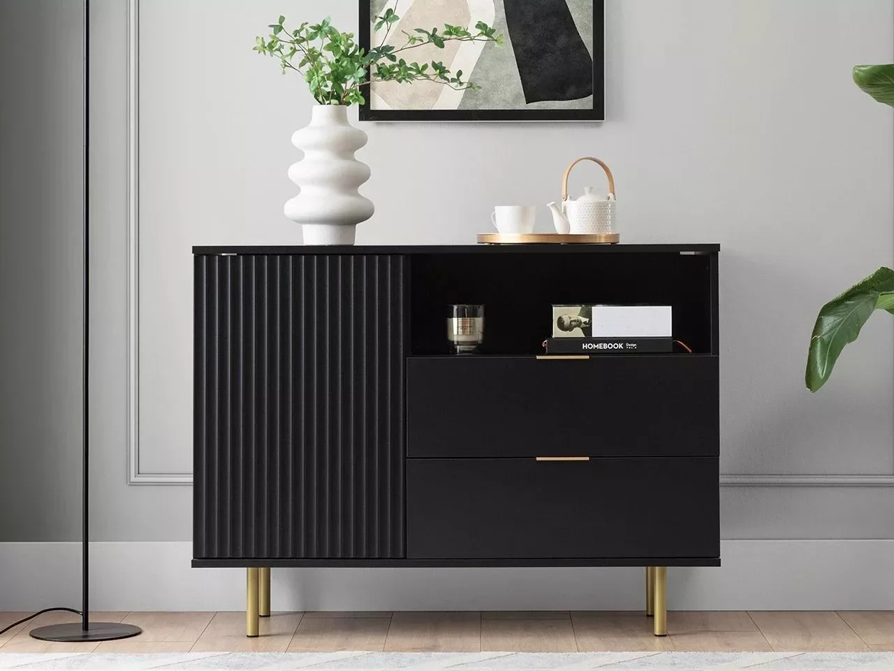 Kombinovaná komoda STELLA vám díky prostorným šuplíkům a policím pomůže uspořádat veškeré dokumenty a vystavit dekorace. Na první pohled zaujme svými frézovanými dvířky, které dodají místnosti eleganci.