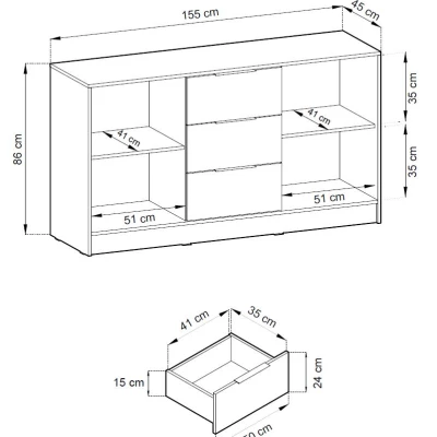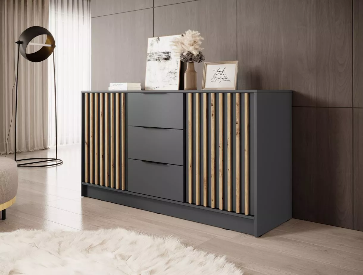 Kombinovaná komoda MARFA - dub artisan / grafitová