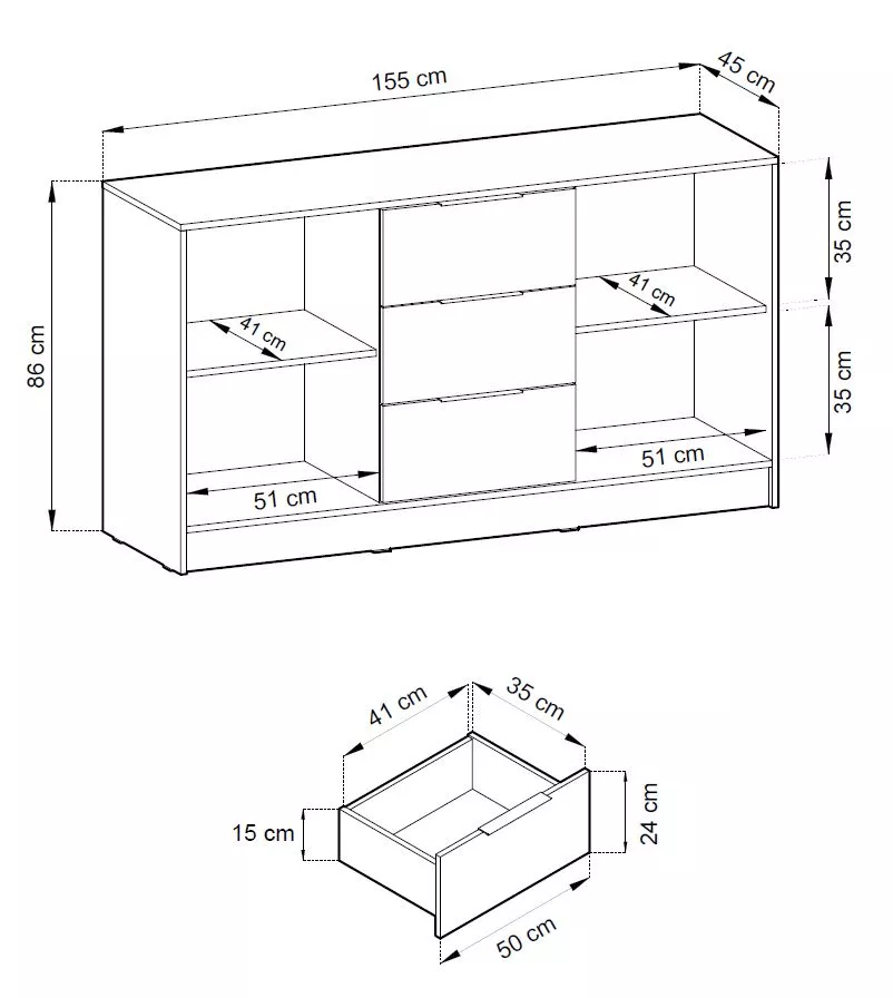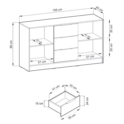 Kombinovaná komoda MARFA spojuje moderní styl s industriálním vzhledem – dřevěný dekor a jednoduché tvary připomínají atmosféru městských loftů. Dekorativní lamely na dvířkách dodávají originalitu a zároveň podtrhují čisté linie nábytku. Díky promyšlenému vnitřnímu uspořádání nabízí vysokou funkčnost a dostatek úložného prostoru pro vše, co chcete mít po ruce i elegantně skryté.