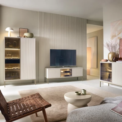 Kombinovaná komoda ILARIA je trendem interiérového designu. Přírodní barva dřeva dává nábytku jedinečné kouzlo, lamely a nožky zase lehkost. Komoda se bude dobře vyjímat v obývacím pokoji nebo v ložnici. Velké množství úložného prostoru potěší každého člena domácnosti.