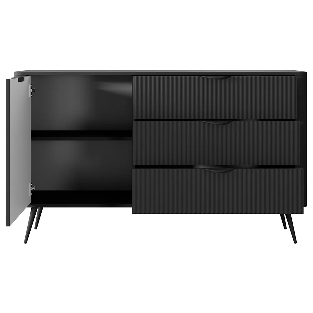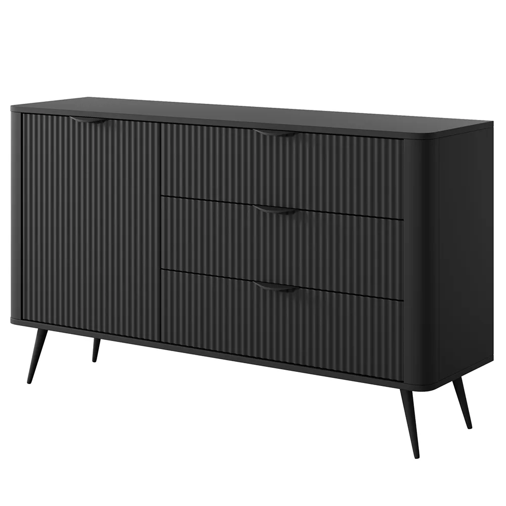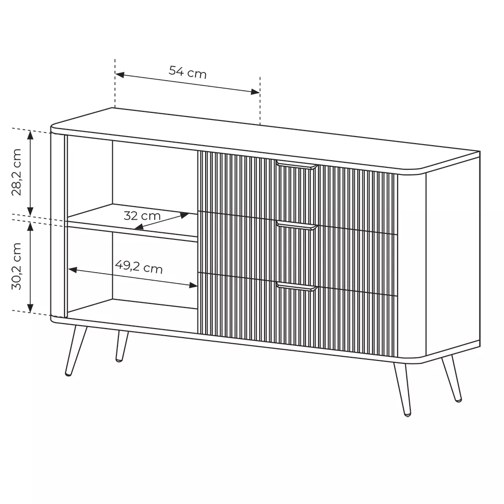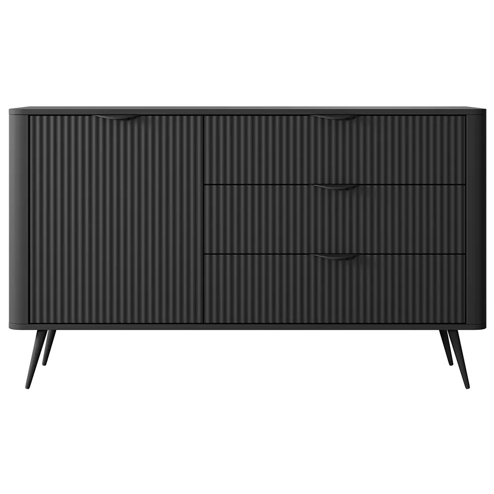 Kombinovaná komoda MOODY vám umožní vytvořit aranžmá plné harmonie, jemnosti a elegance. Zaoblené hrany a drážkované přední díly dodávají komodě moderní nádech a originalitu. Design komody je inspirován glamour stylem, ideální pro ty, kteří si potrpí na moderní formy a sofistikovanou eleganci.