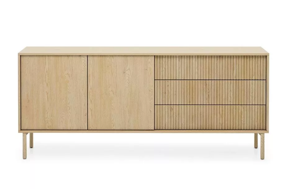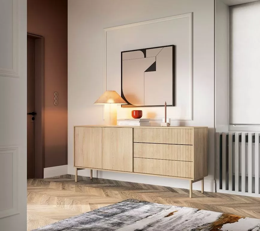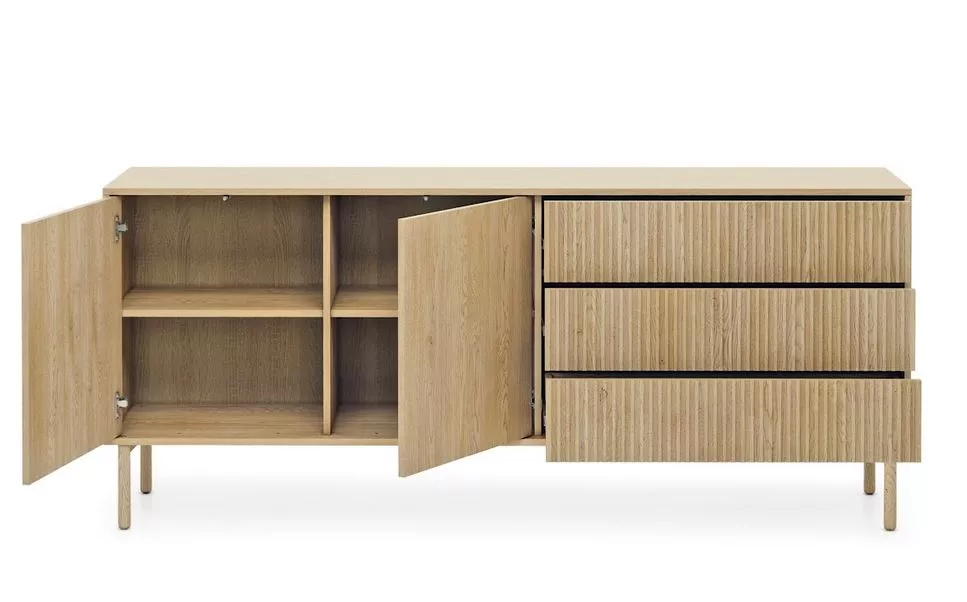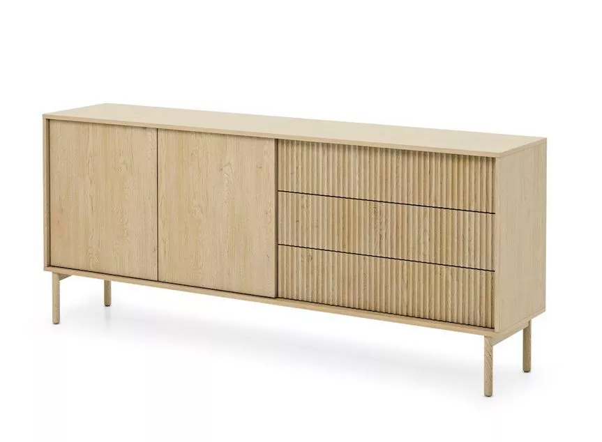 Objevte širokou kombinovanou komodu TUSCUBIA, která v sobě spojuje japonskou estetičnost a skandinávskou jednoduchost. Funkční tvary a drážkovaná čela dodávají nábytku zajímavý detail, zatímco masivní nohy a systém otevírání PUSH TO OPEN zajišťují lehkost a praktičnost. Teplý odstín dubu cremona evokuje přírodní klid a vytváří útulnou atmosféru ve vašem domově – ideální pro ty, kteří touží po harmonii a pohodlí.