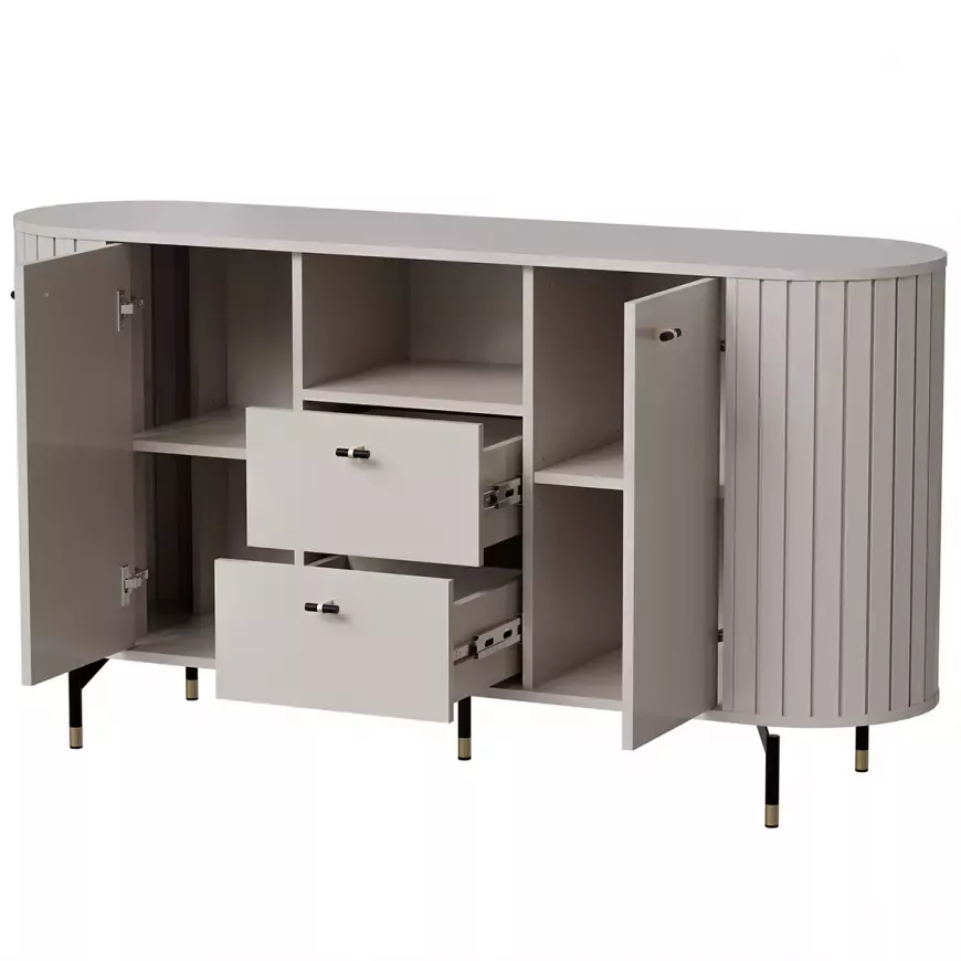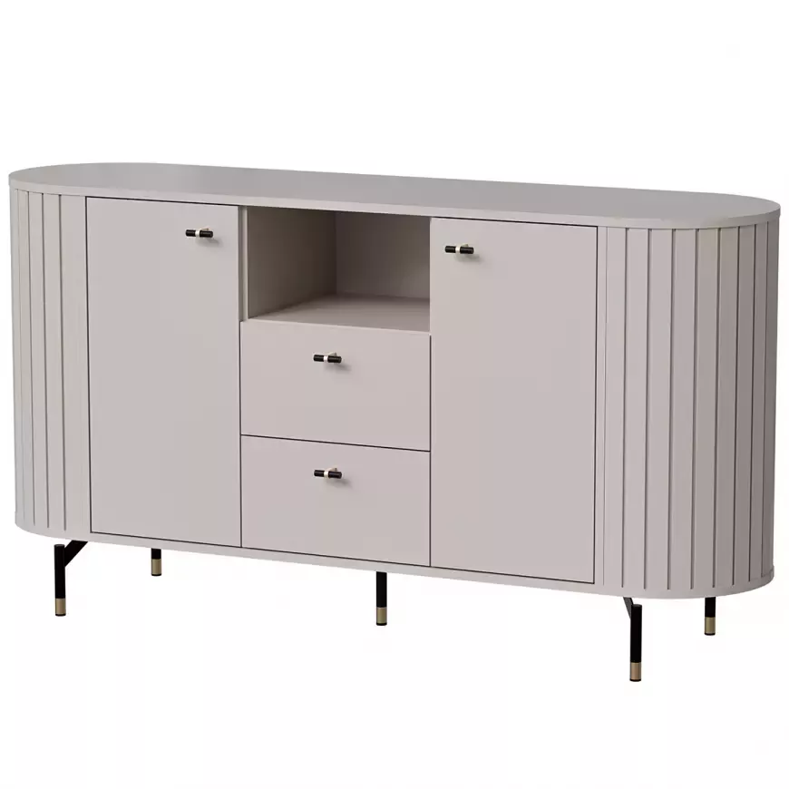 Kombinovaná komoda APEX spojuje luxusní vzhled s praktičností. Kombinace skříněk, šuplíků a otevřené police nabízí místo na dokumenty, suvenýry i dekorace. Zdobení v podobě lamel zaujme na první pohled a přidává nábytku jedinečný styl.