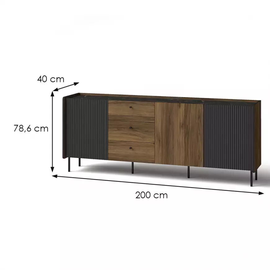 Kombinovaná široká komoda ASHEBORO - ořech / san sebastian / černá