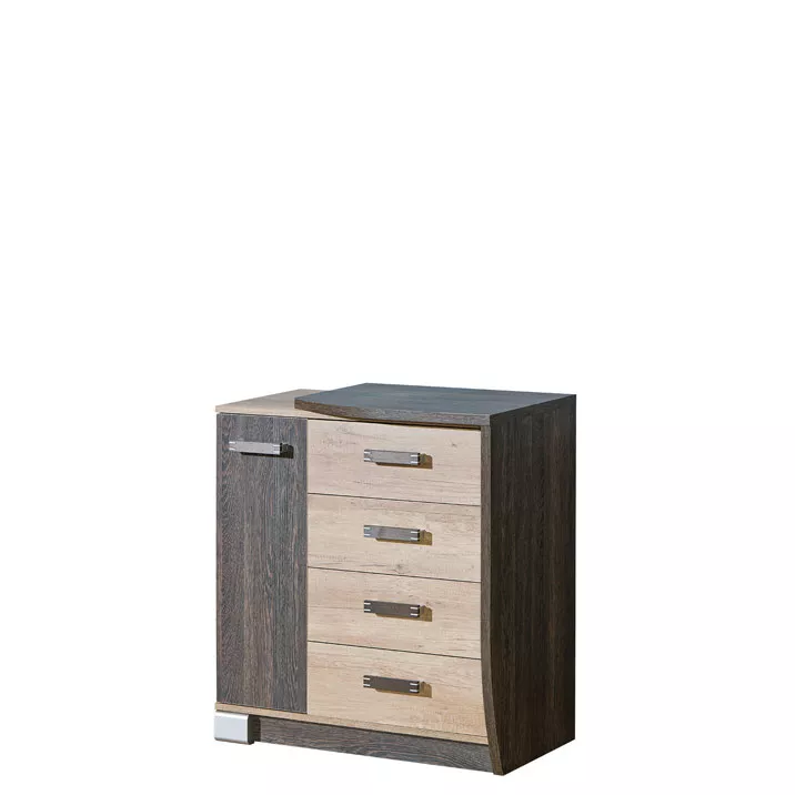 Kombinovaná komoda BENSON je charakteristická svým kontrastním barevným provedením. Disponuje 4 šuplíky a dvířky pro uložení všeho potřebného. Je vyrobena z kvalitních materiálů, takže vám bude sloužit mnoho let.