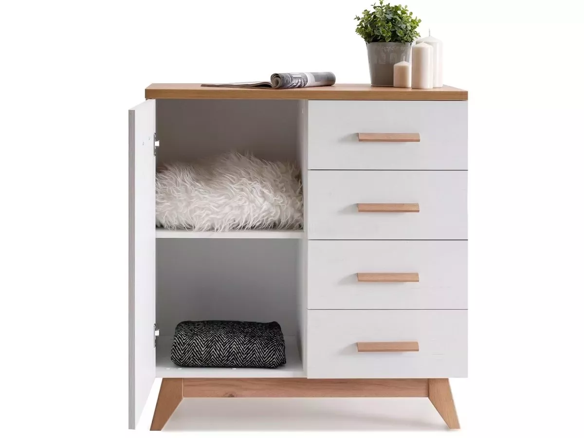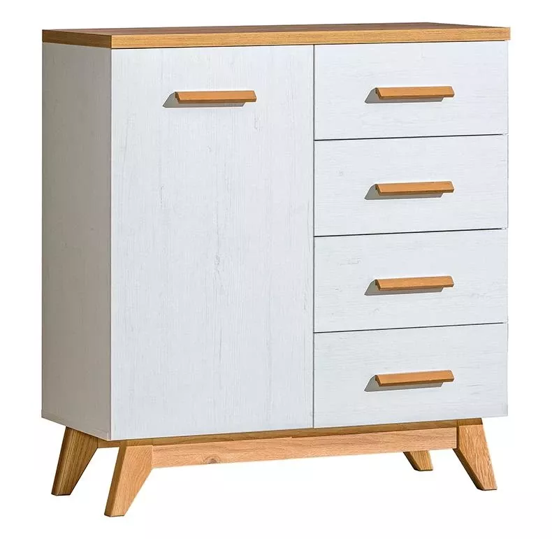 Kombinovaná komoda BUTNER je stylový a praktický kousek do obýváku nebo ložnice. 4 šuplíky a skříňka nabízí dostatek místa pro veškeré dokumenty, dekorace nebo oblečení. Stolek skvěle zapadne do skandinávského interiéru.