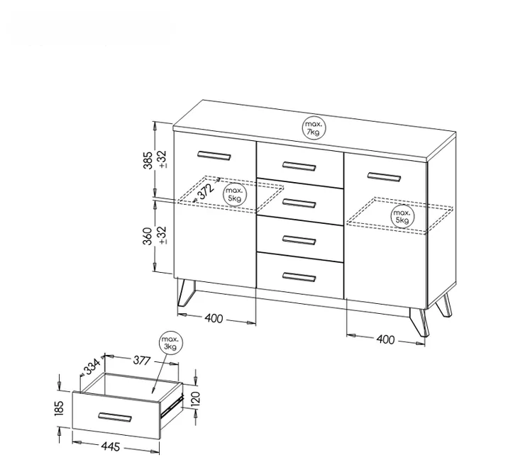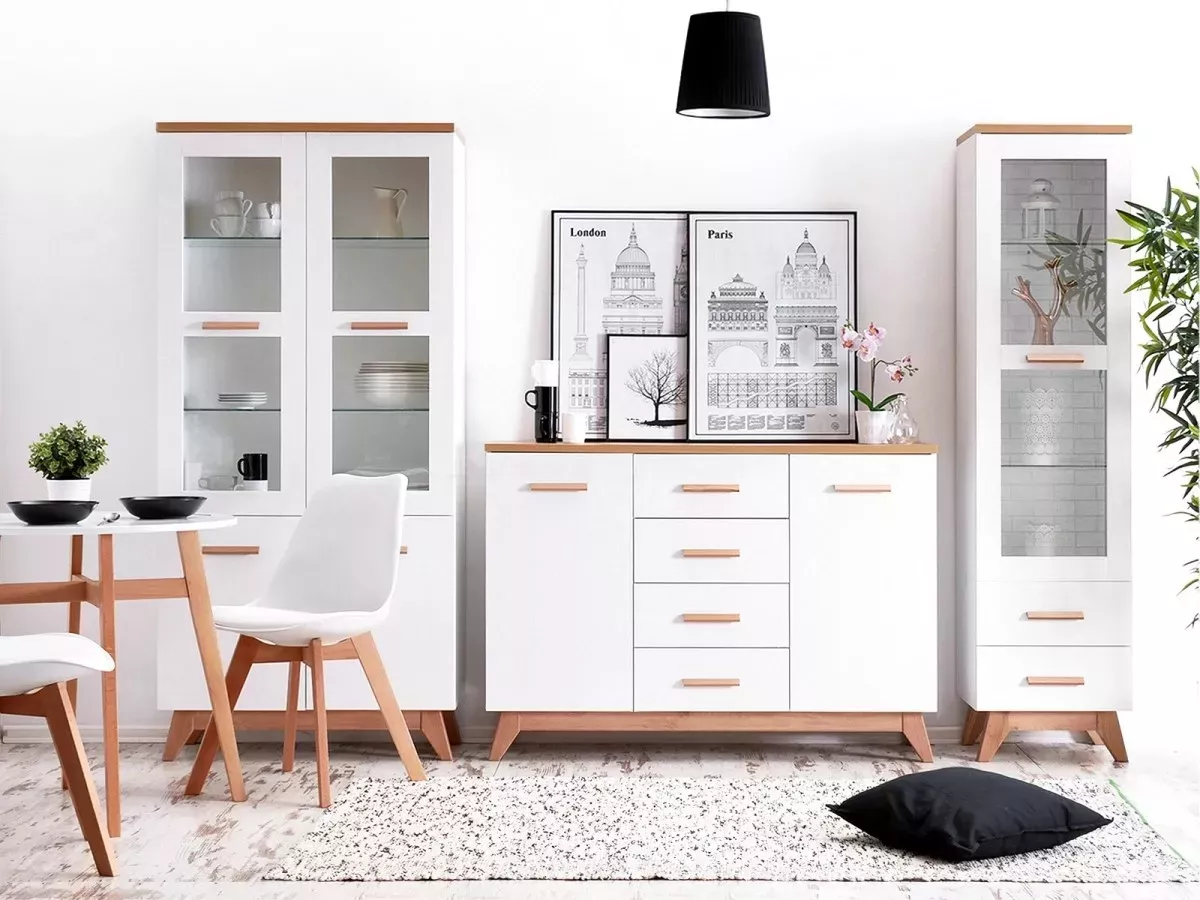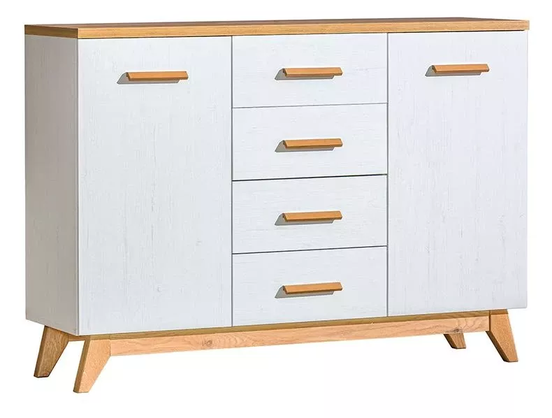 Široká kombinovaná komoda BUTNER je stylový a praktický kousek do obýváku nebo ložnice. 4 šuplíky a 2 skříňky nabízí dostatek místa pro veškeré dokumenty, dekorace nebo oblečení. Stolek skvěle zapadne do skandinávského interiéru.
