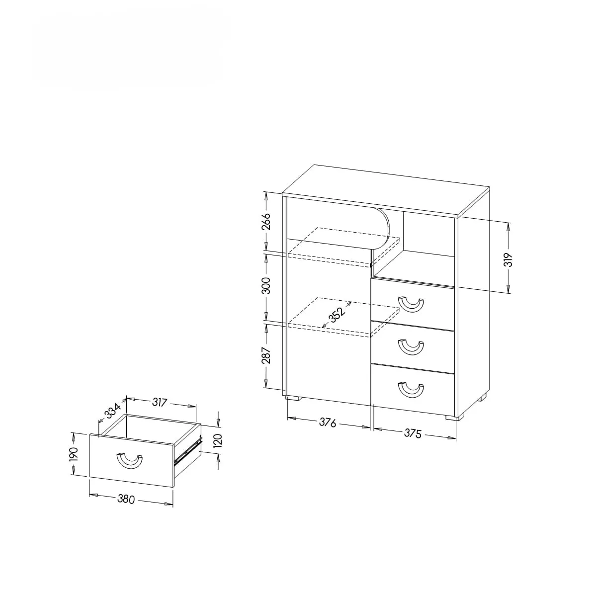 Kombinovaná komoda EDENTON bude ideální volbou do každého studentského nebo dětského pokoje. Disponuje uzavřenou skříňkou s 2 policemi a 3 šuplíky. Komoda je vyrobena z odolných a pevných materiálů, takže vám bude sloužit mnoho let.