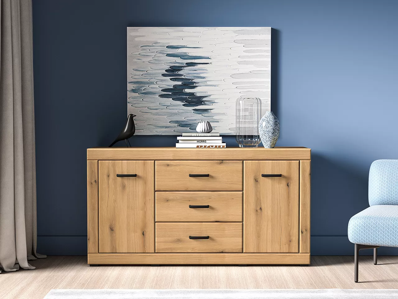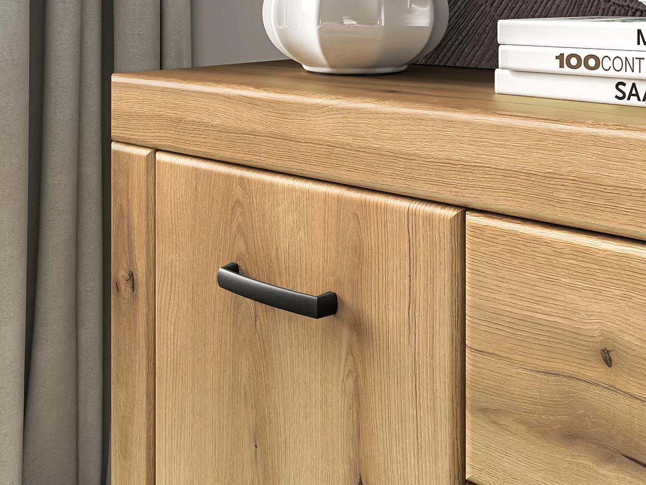 Kombinovaná komoda ADELLA díky svému dekoru dubu skvěle zapadne do každého stylu interiéru vašeho obývacího pokoje nebo ložnice. Komoda nabízí dostatek úložného prostoru v podobě 3 prostorných šuplíků a 2 uzavřených skříněk s policí. Systém tichého dovírání zpříjemní každodenní používání.