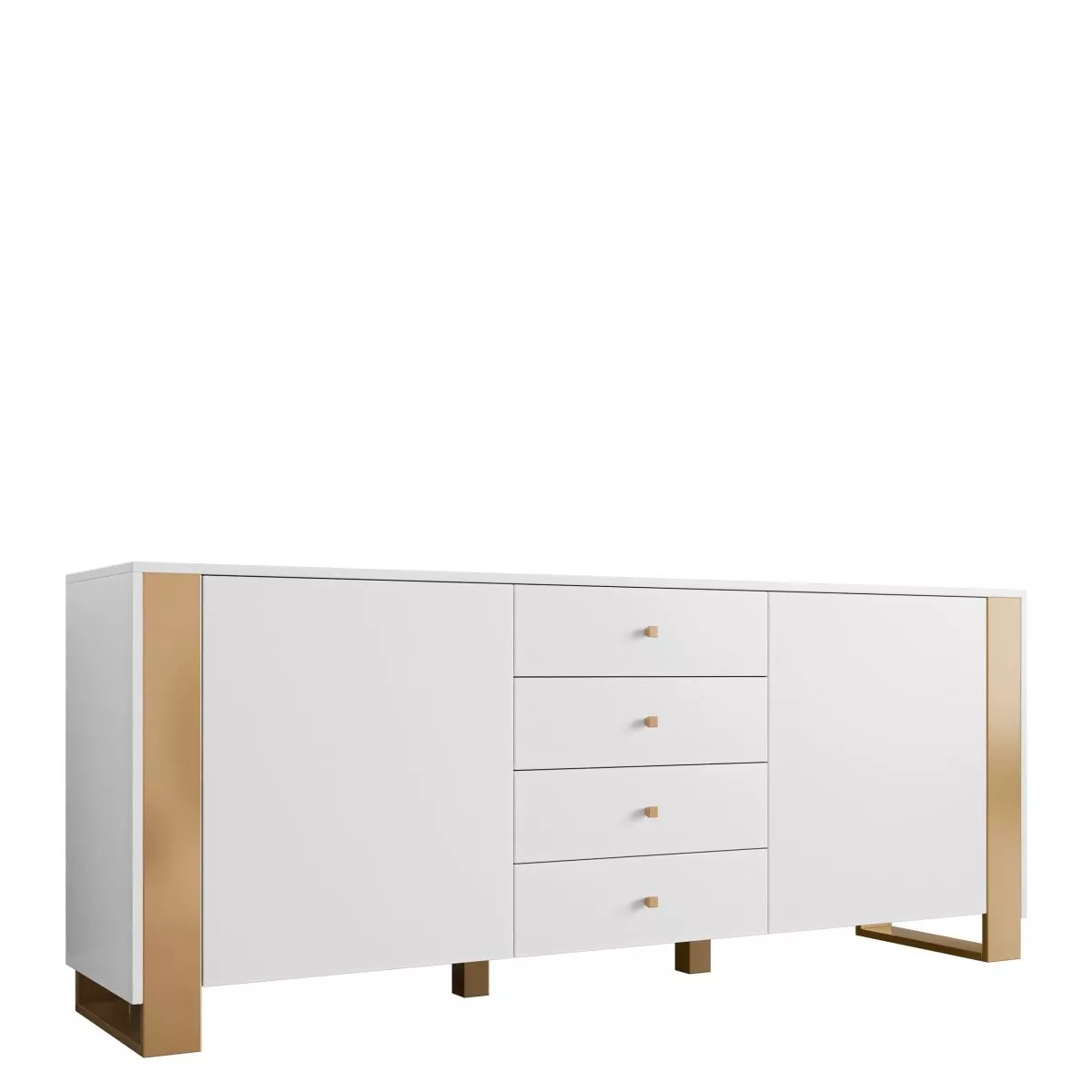 Široká kombinovaná komoda LUMOS - zlatá / bílá