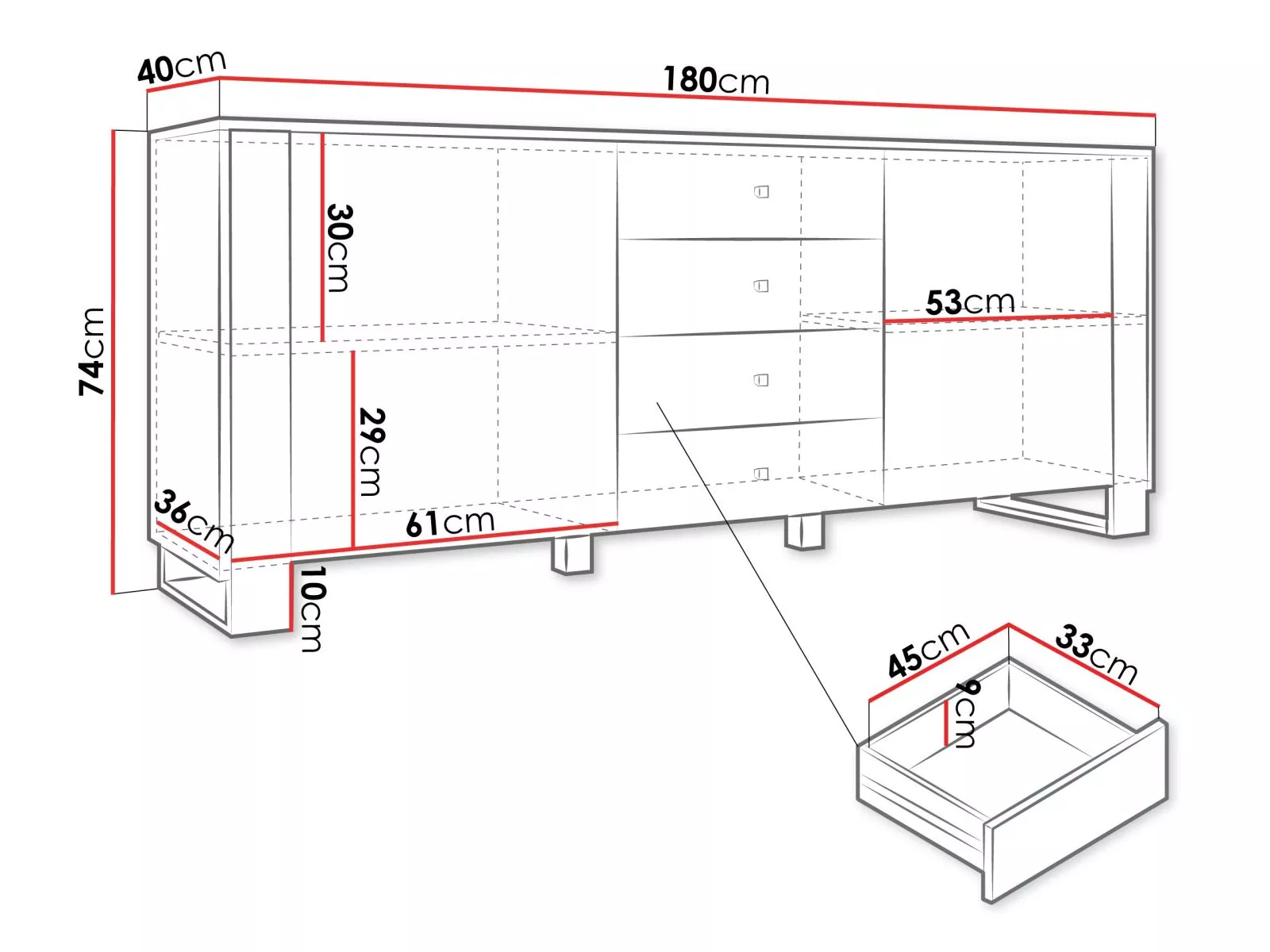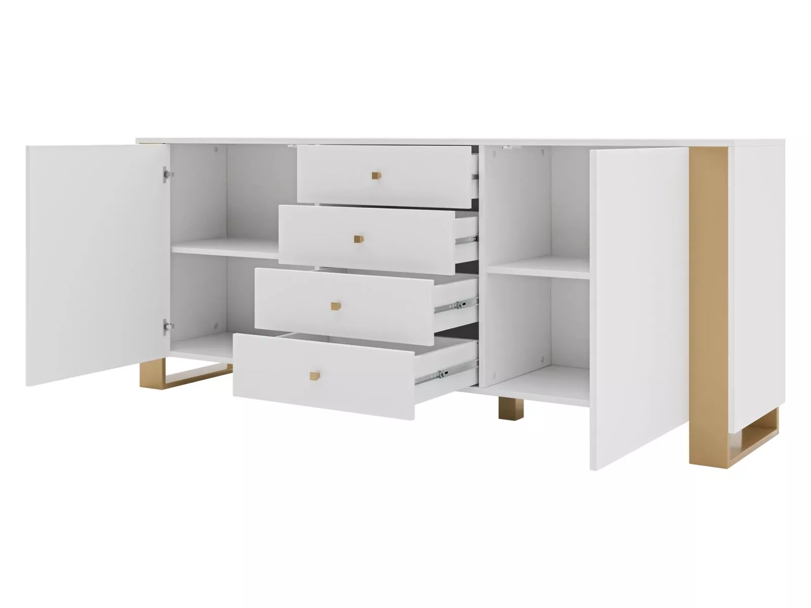 Obklopte se elegancí s kombinovanou komodou LUMOS, která spojuje minimalismus s jemnými zlatými detaily. Decentní úchytky a ozdobné lišty podtrhují její vytříbený charakter a dodávají prostoru noblesní atmosféru. Praktické šuplíky a skříňky nabídnou dostatek místa pro oblečení, doplňky či drobnosti a zajistí dokonalý pořádek. Stylové provedení se bude krásně vyjímat v obývacím pokoji i v ložnici.