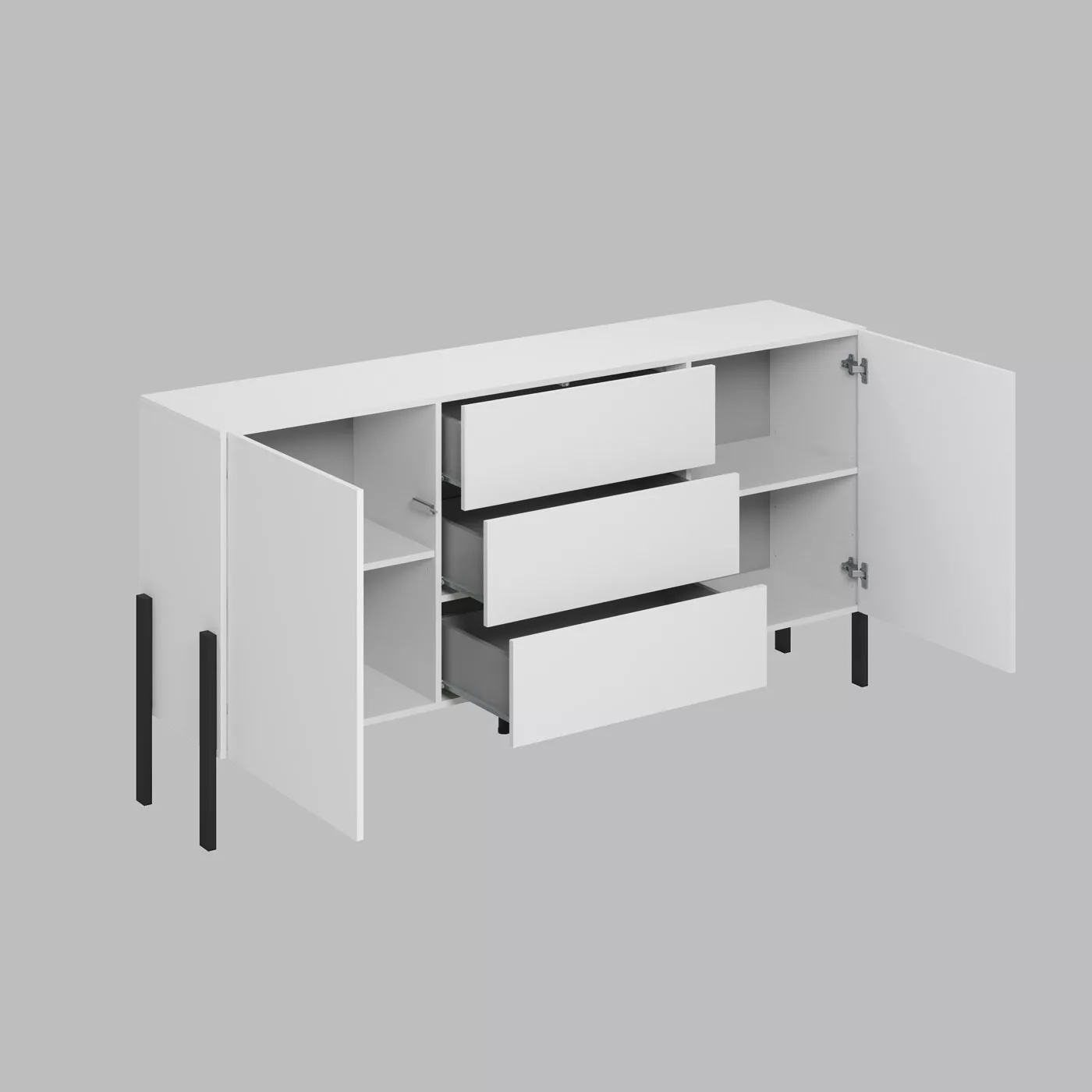 Široká kombinovaná komoda ADIS svým minimalistickým vzhledem zapadne do každé místnosti. Vysoké kovové nožky dodávají komodě stabilitu a pevnost. Disponuje 4 prostornými skříňkami pro uložení všech potřebných věcí.