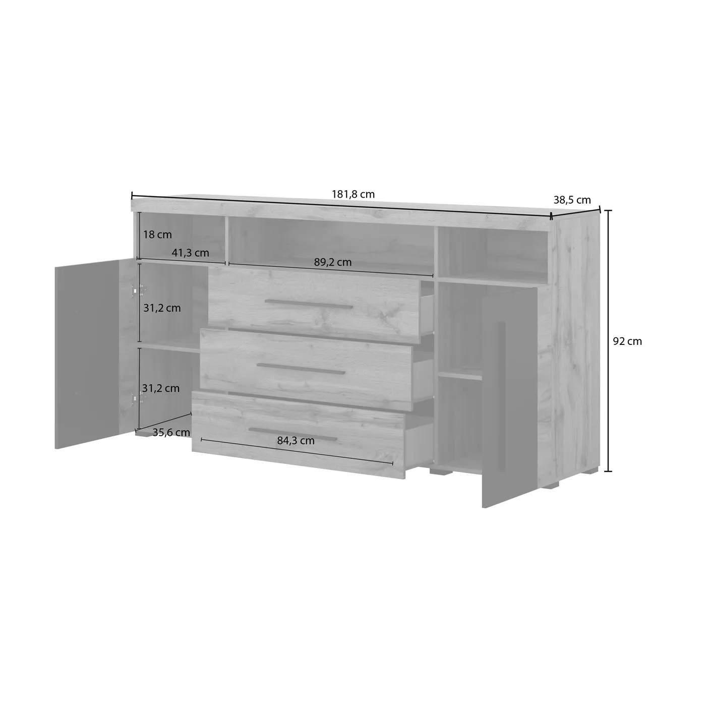 Kombinovaná komoda DEIDRE zaujme především svým masivním provedením a dekorem dubu. Nabízí spoustu úložného prostoru pro uschování veškerých dokumentů, ubrusů nebo pro vystavení dekorací. Disponuje 3 šuplíky, 2 uzavřenými skříňkami a 3 otevřenými přihrádkami.