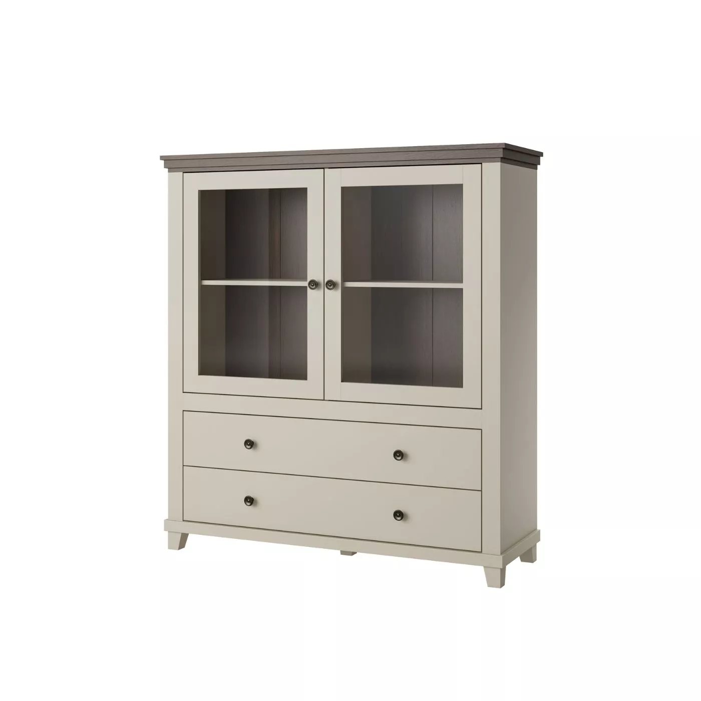 Vysoká komoda s prosklenými dvířky EROL - béžová / dub dunin