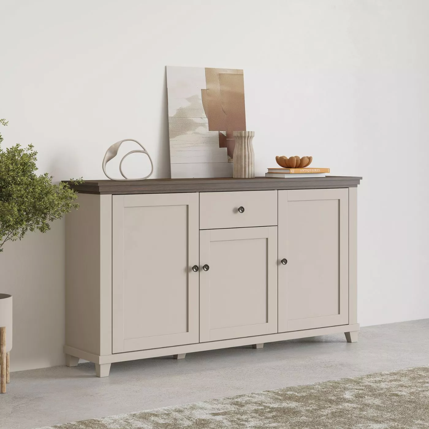 Kombinovaná komoda EROL je ideálním kusem nábytku pro uložení vašich oblíbených dekorací, ubrusů nebo nádobí. Komoda disponuje 3 uzavřenými skříňkami a šuplíkem. Navíc je vybavená systémem tichého dovírání, což zpříjemní její každodenní používání.