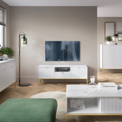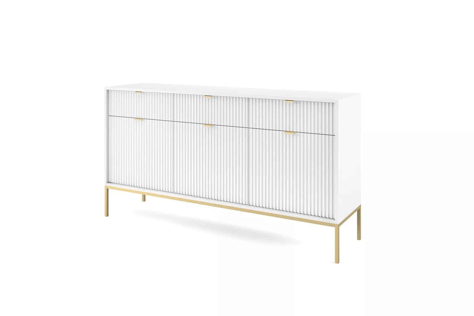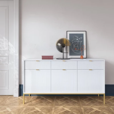 Široká kombinovaná komoda MISHEEL - bílá / zlatá