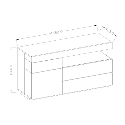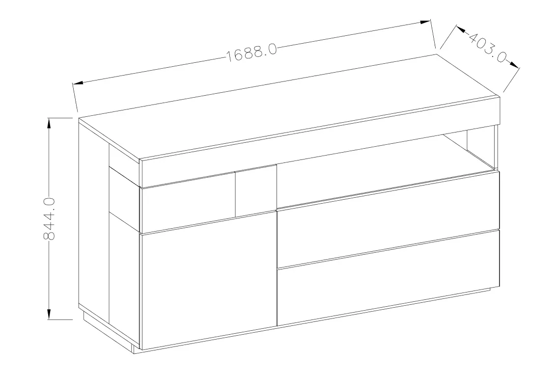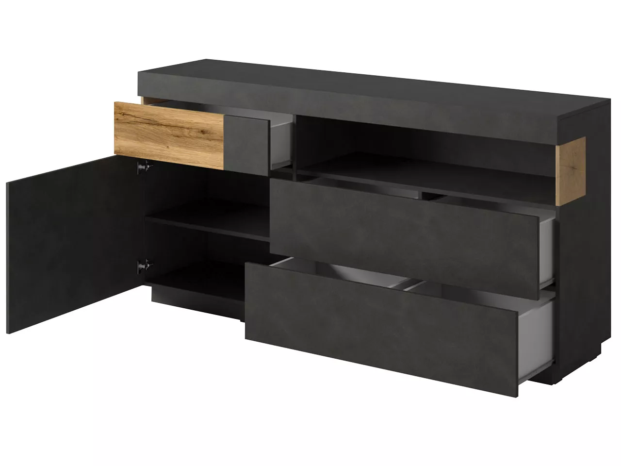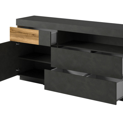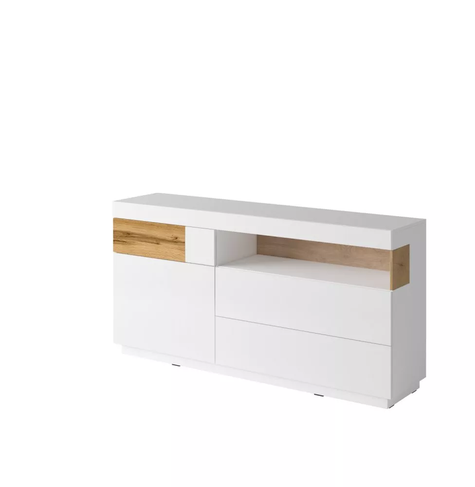 Luxusní komoda v moderním stylu ve 3 jedinečných dekorech, které vznikly v souladu s nejnovějšími trendy. Komoda je vyrobená z kvalitní LTD desky s ochrannými ABS lištami. Povrch dvířek je potažený lesklou fólií, která zaručí snadnou péči a údržbu. Ať už zvolíte jakékoliv barevné provedení, Váš obývací pokoj bude vypadat naprosto luxusně.