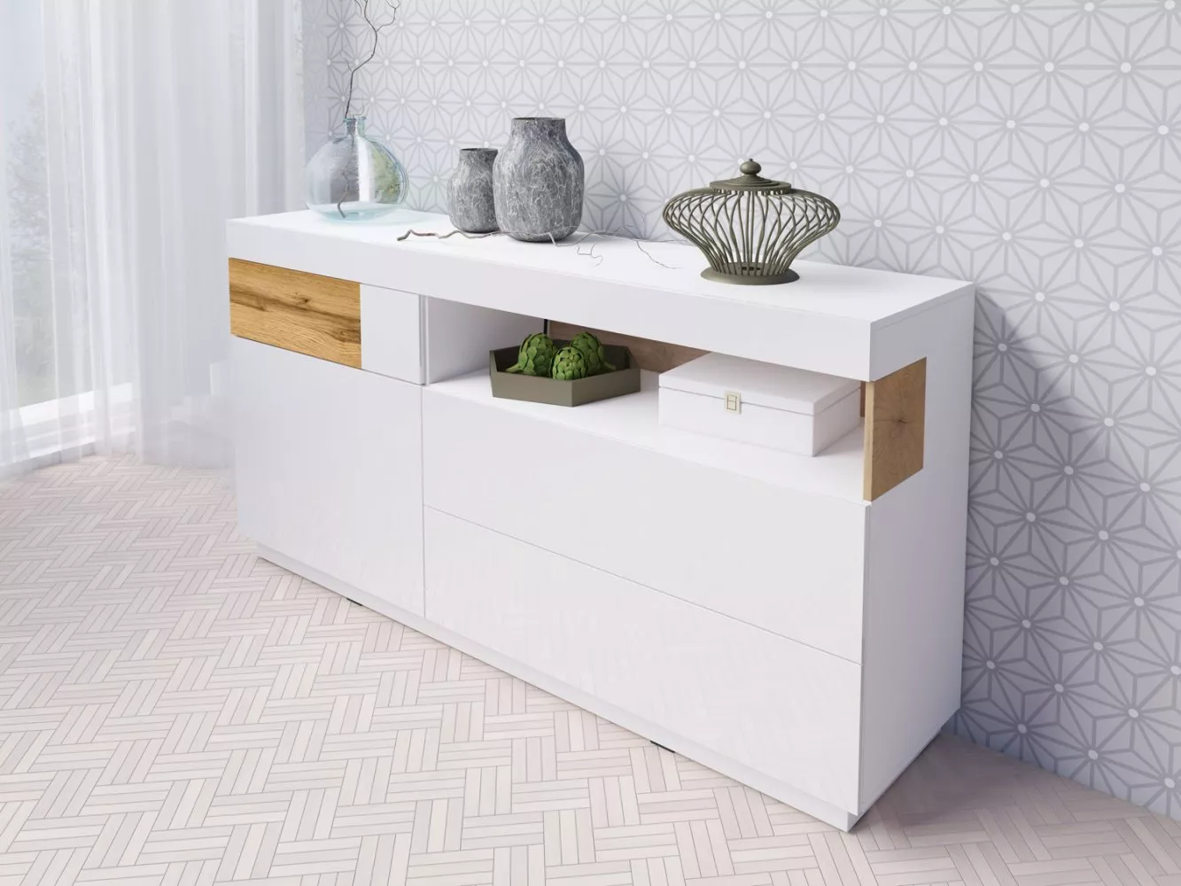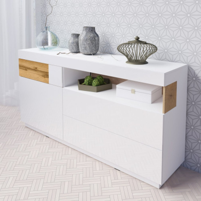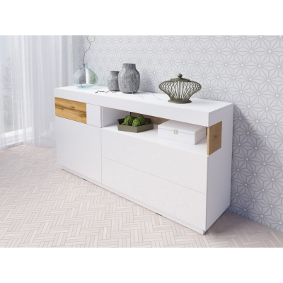 Moderní komoda se šuplíky SHADI, bílá + dub wotan