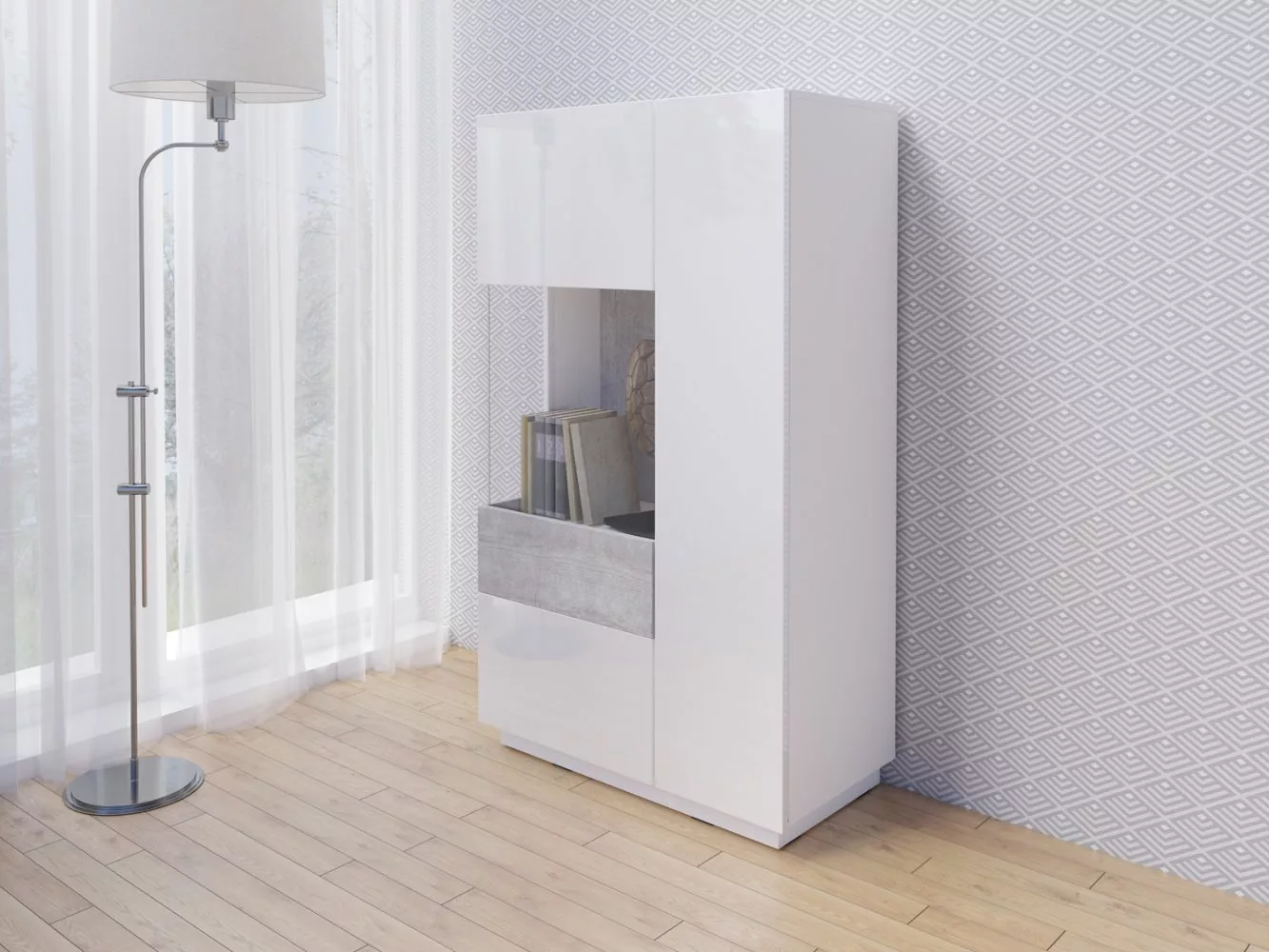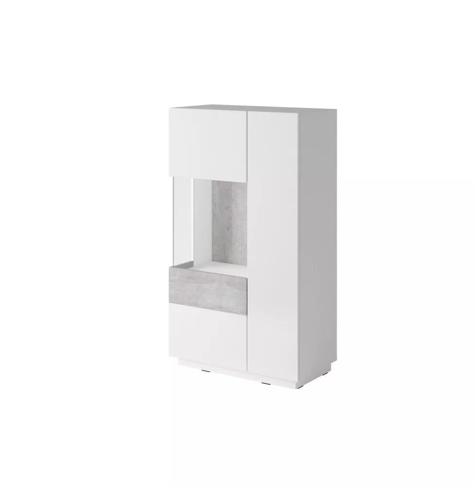 Vysoká komoda s prosklenou částí SHADI levá, bílá + beton