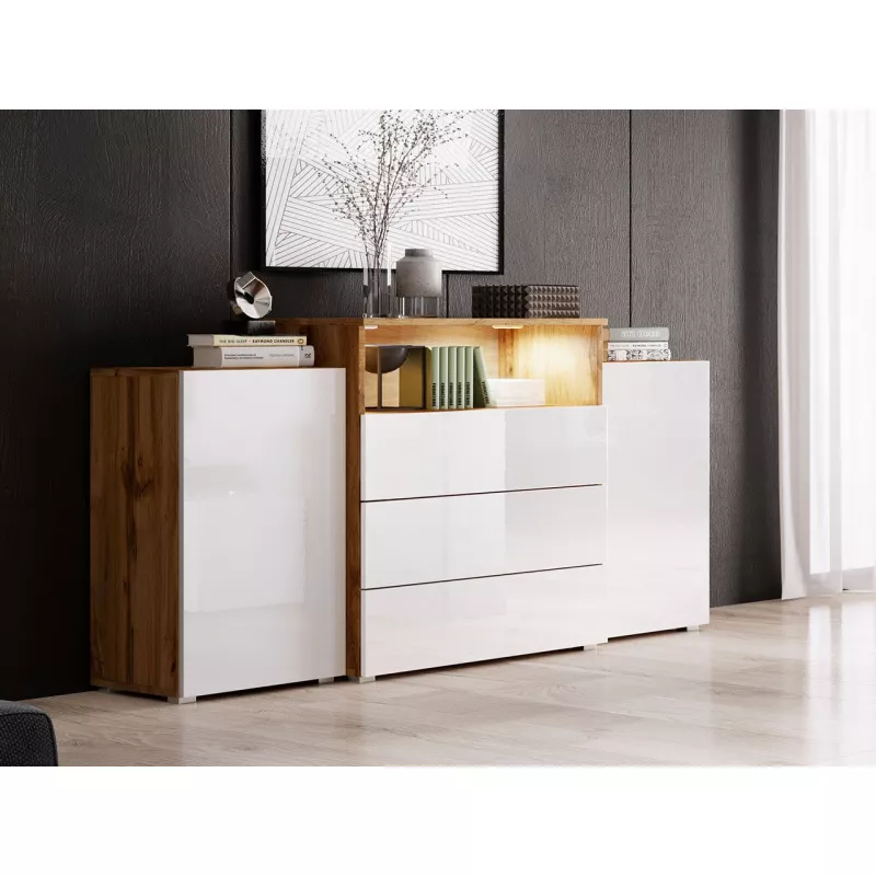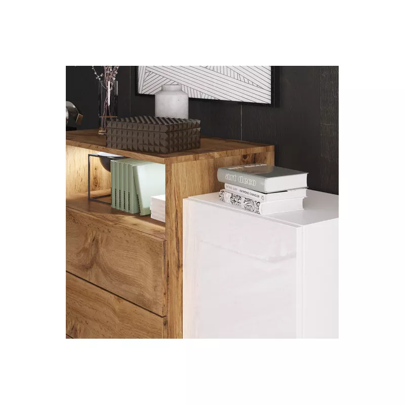 Kombinovaná komoda ZORINA - dub wotan / lesklá bílá
