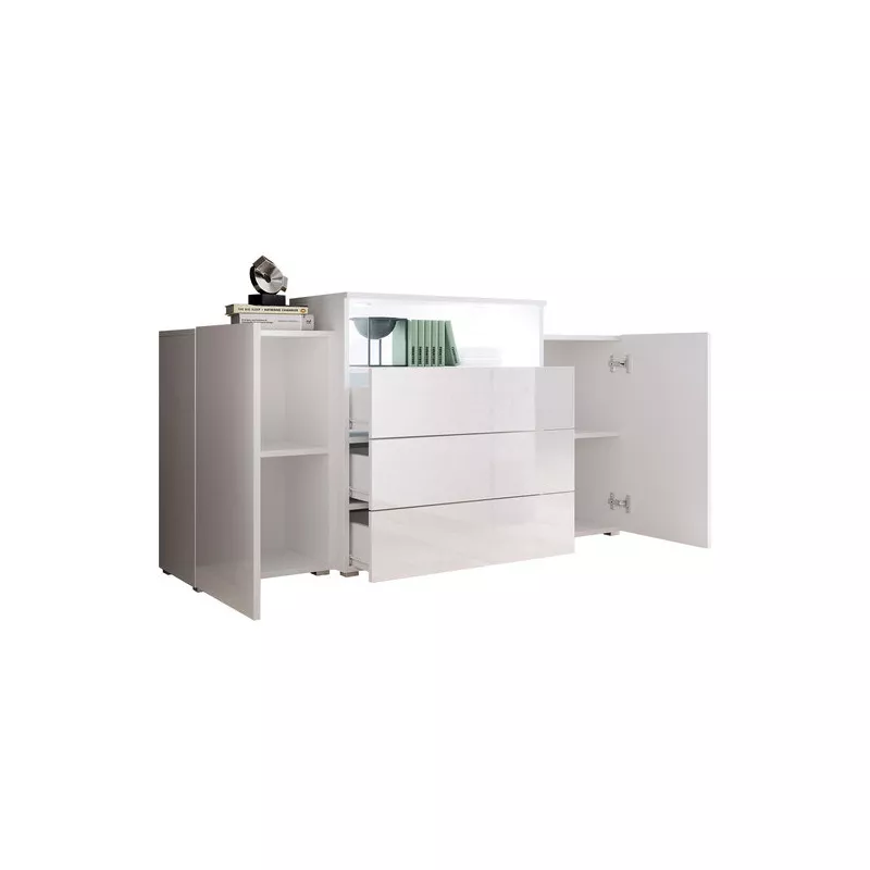 Praktická kombinovaná komoda Zorina najde své využití v každém moderním interiéru. V prostorných skříňkách a šuplících můžete snadno ukládat jakékoliv předměty, včetně studijního materiálu či sezónního oblečení. Komoda nedisponuje úchyty, otevírá se pomocí čela vyčnívajícího nad korpus. Dvě zásuvky se otevírají pomocí systému "push to open" - stačí pouze lehce zatlačit a dojde k otevření.