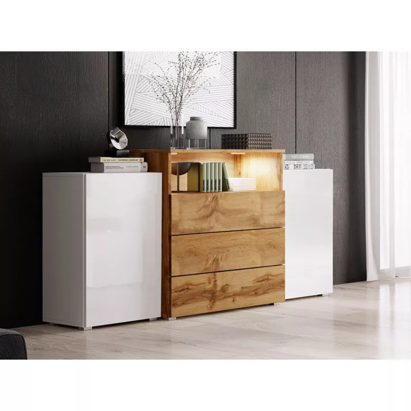 Kombinovaná komoda s LED osvětlením ZORINA - dub wotan / bílá