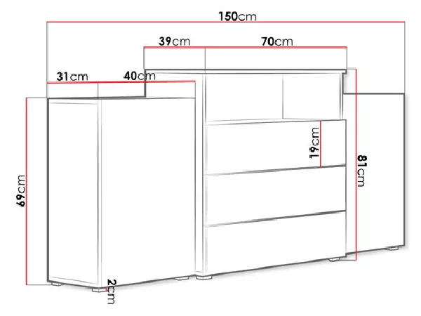 Praktická kombinovaná komoda Zorina najde své využití v každém moderním interiéru. V prostorných skříňkách a šuplících můžete snadno ukládat jakékoliv předměty, včetně studijního materiálu či sezónního oblečení. Komoda nedisponuje úchyty, otevírá se pomocí čela vyčnívajícího nad korpus. Dvě zásuvky se otevírají pomocí systému "push to open" - stačí pouze lehce zatlačit a dojde k otevření. Komoda je vybavena praktickým bílým LED osvětlením.