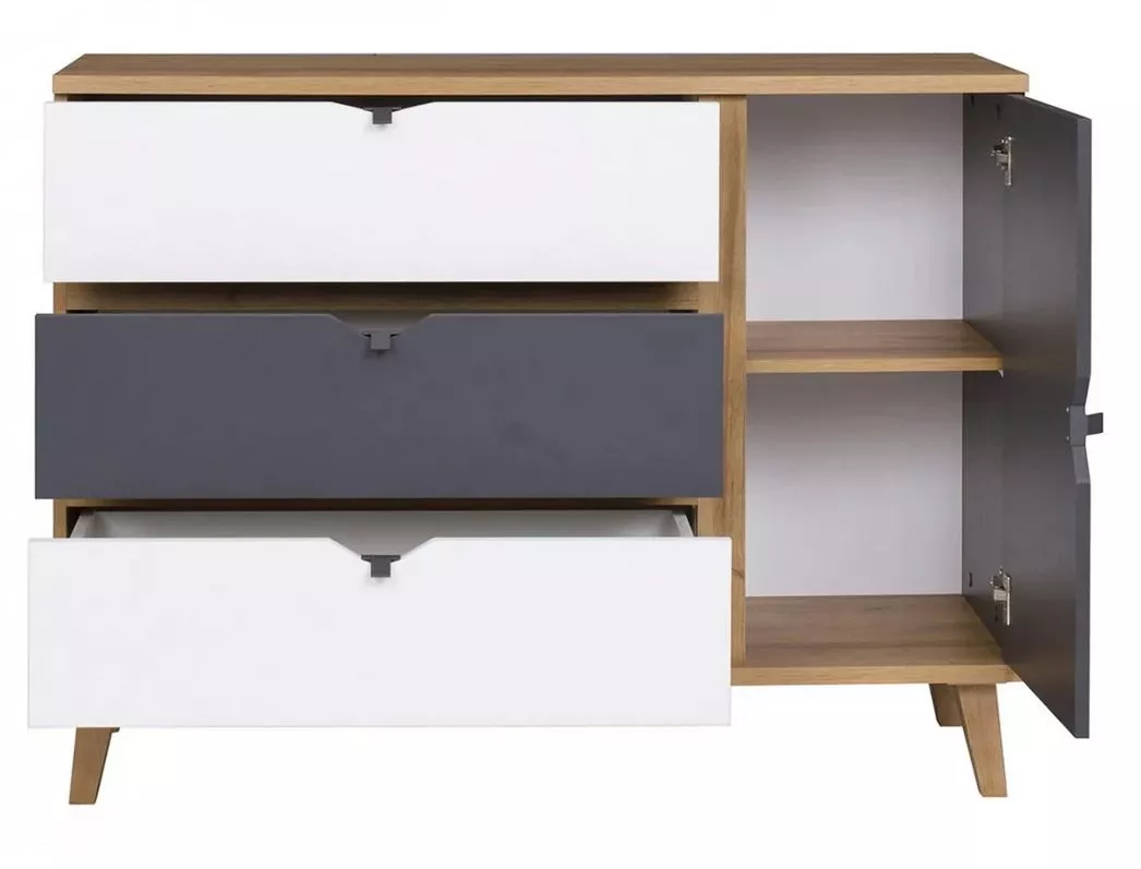 Kombinovaná komoda VISTA - dub zlatý / bílá / grafit