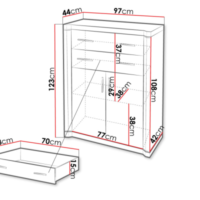 Kombinovaná komoda ARIKA najde své využití v každém moderním interiéru. V prostorných zásuvkách a skříňce lze snadno ukládat jakékoliv předměty, včetně studijního materiálu či sezónního oblečení. Vrstvená deska, ze které je komoda vyrobena, byla zahuštěna a frézována, což jí dodalo jedinečný vzhled a zvýšenou odolnost.