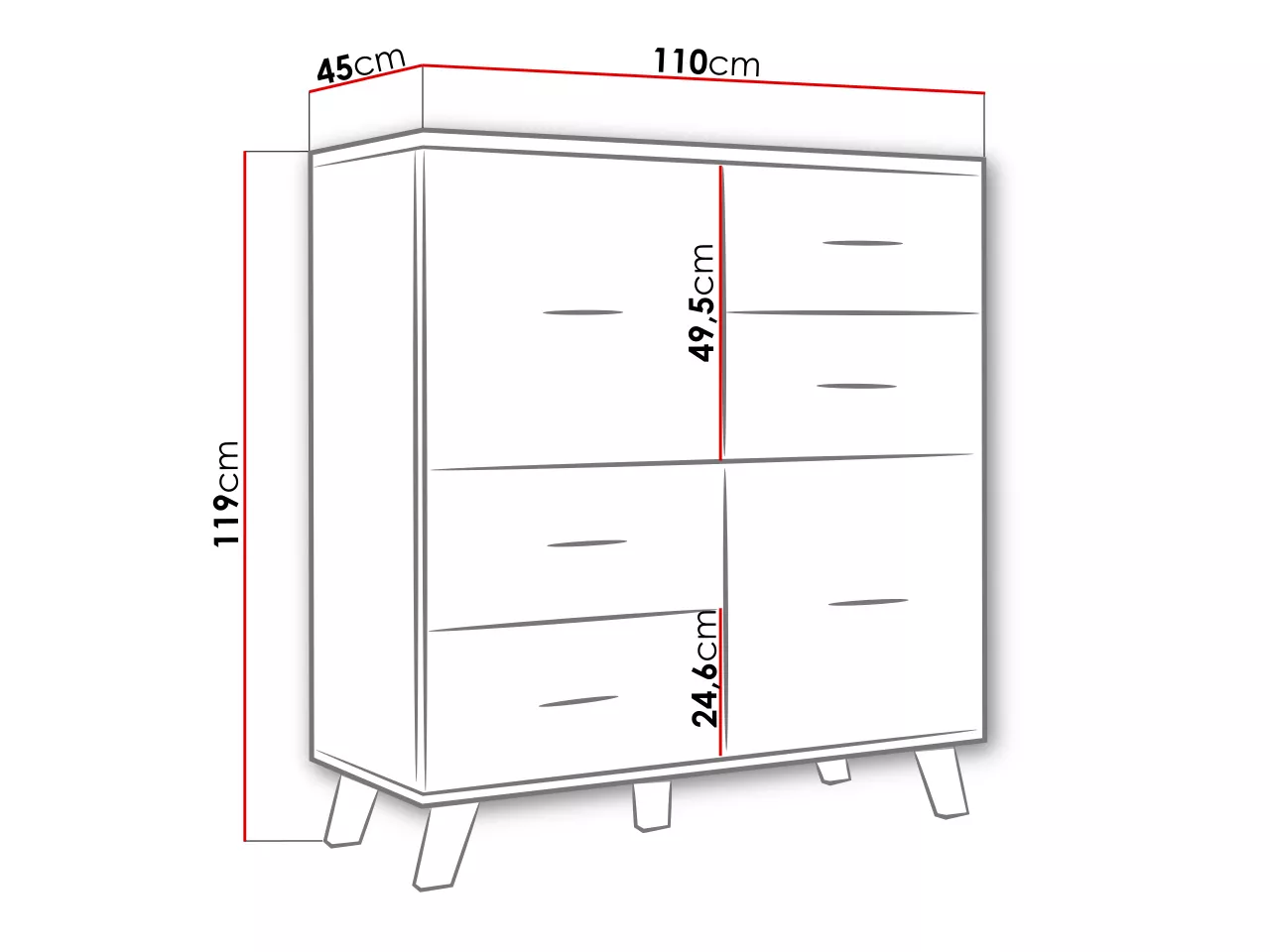 Kombinovaná komoda COLINA 2 najde své využití v každém moderním a industriálním interiéru. V prostorných skříňkách a zásuvkách lze snadno ukládat jakékoliv předměty, včetně studijního materiálu či sezónního oblečení. Konstrukce komody je vyrobena z vysoce kvalitní DTD.