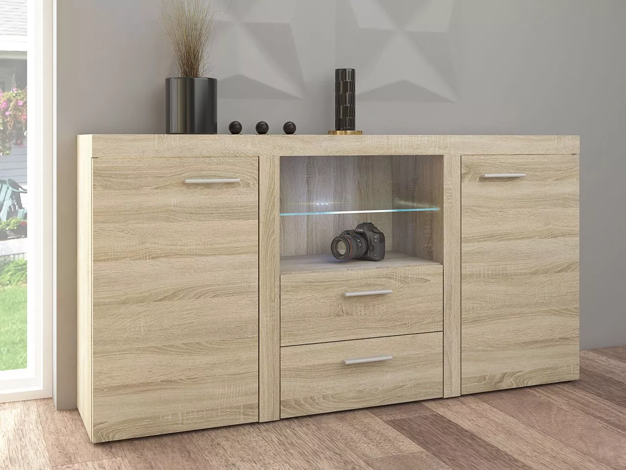 Moderní kombinovaná komoda s LED osvětlením THISE - dub sonoma