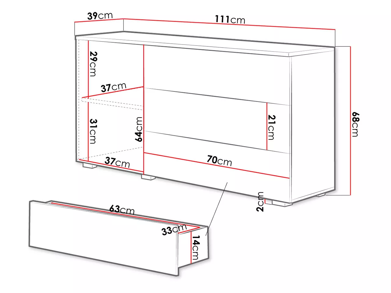 Moderní kombinovaná komoda MERISA 110 efektně doplní uspořádání obývacího pokoje v moderním stylu. Funkčnost nábytku dodává řada praktických zásuvek a uzavřená skříňka, které jsou jednoduše přizpůsobeny k ukládání předmětů.