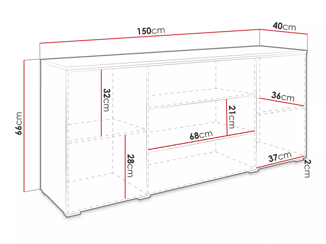Kombinovaná komoda AKASURI poskytuje dostatek úložného prostoru v podobě zásuvek a skříněk s dvířky po stranách komody. Za zmínku stojí pohodlný systém otevírání „PUSH TO OPEN“ pro snadnější manipulaci. Součástí komody je praktické RGB LED osvětlení, které se ovládá pomocí dálkového ovládání.
