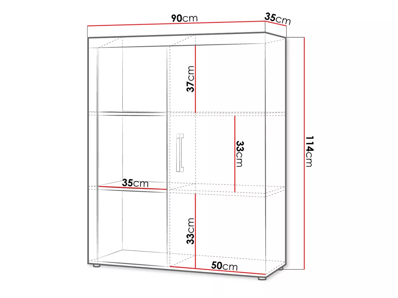 Stylová kombinovaná komoda CHENG 1 spojuje minimalismus a vysokou funkčnost. Je vybavena otevřenými poličkami a skříňkou, které poslouží pro úschovu domácích doplňků a vystavení dekorací.