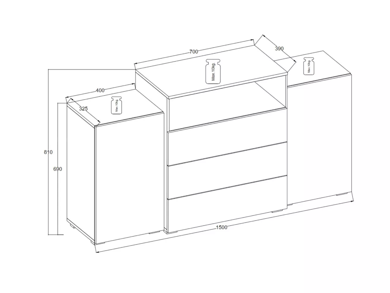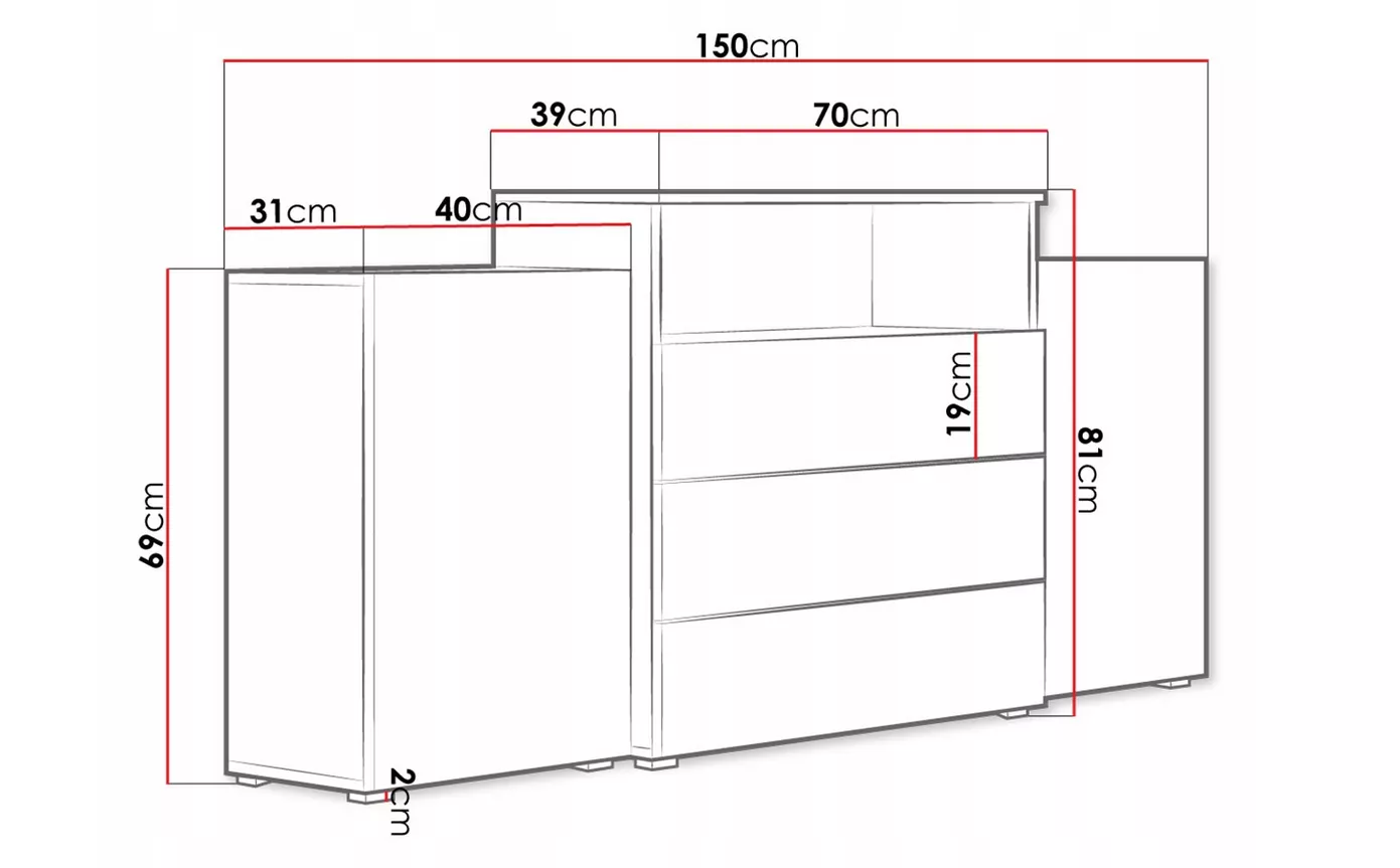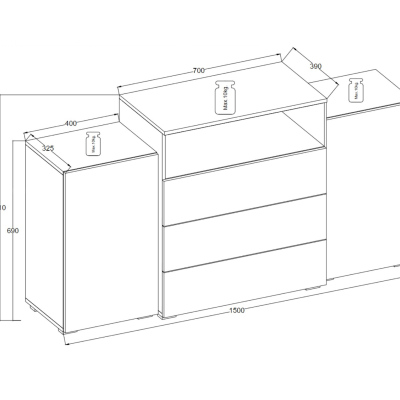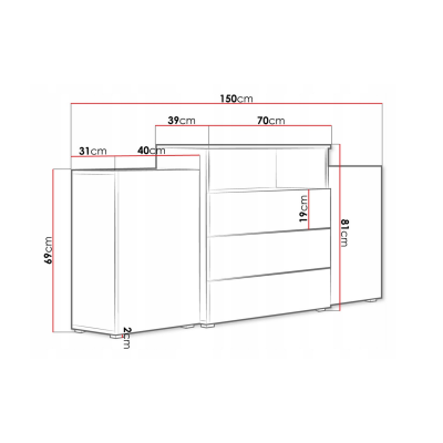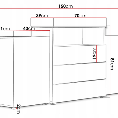 Kombinovaná komoda POSIE nabízí dostatek úložného prostoru. 2 šuplíky disponují funkcí „push to open“. Hrany komody jsou osazeny ABS.