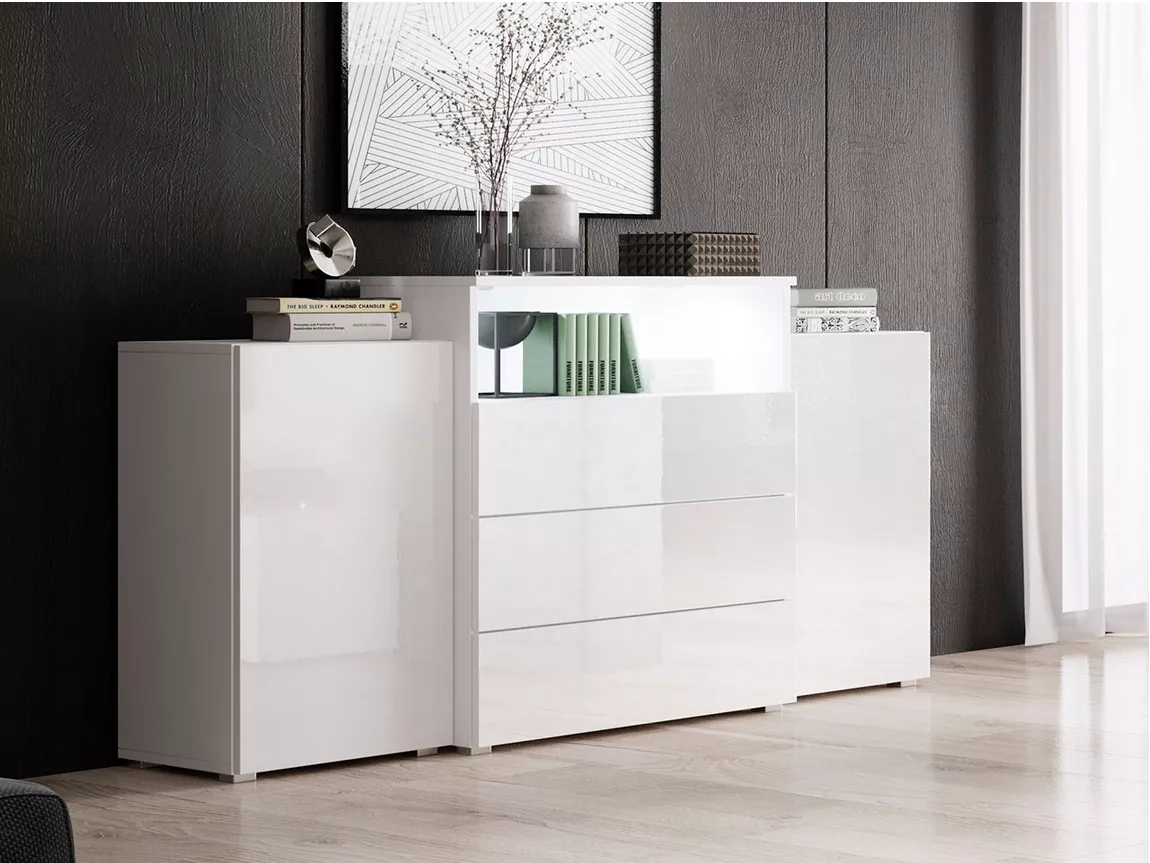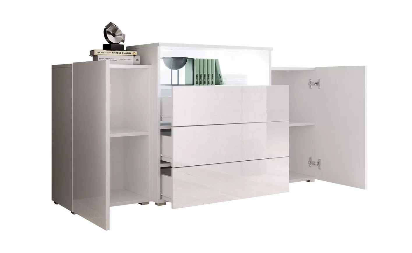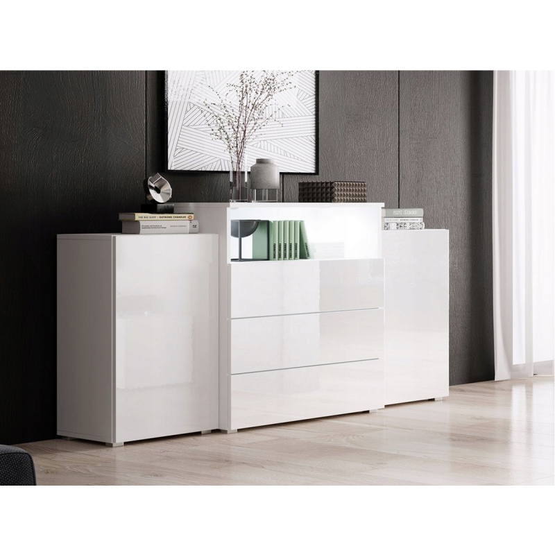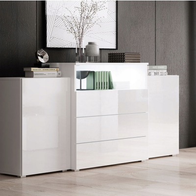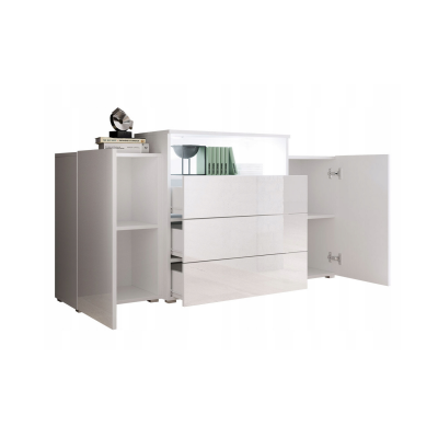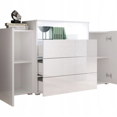 Kombinovaná komoda POSIE - bílá / bílá lesk