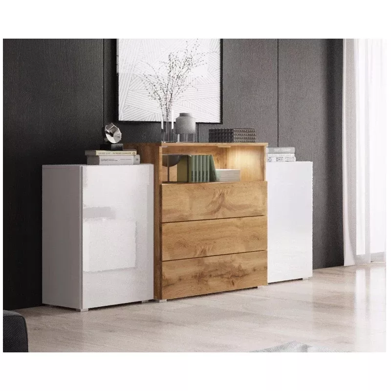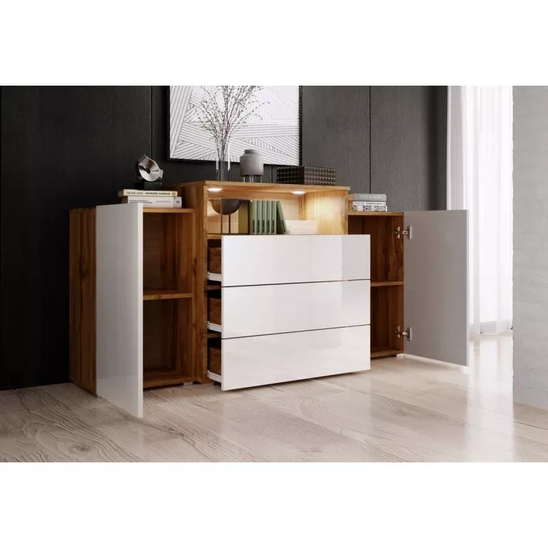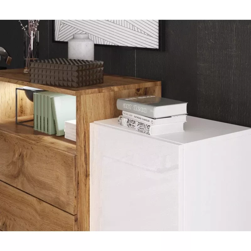 Kombinovaná komoda POSIE - bílá lesk / wotan